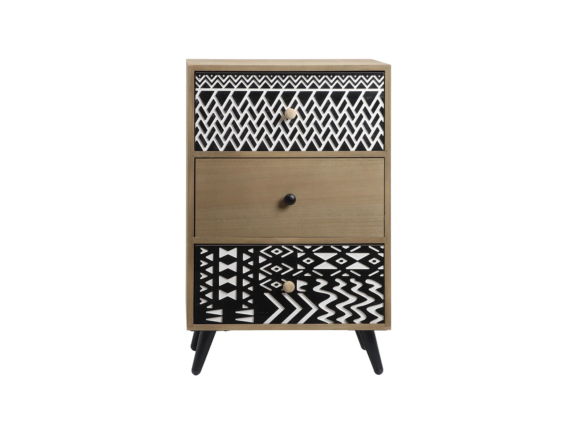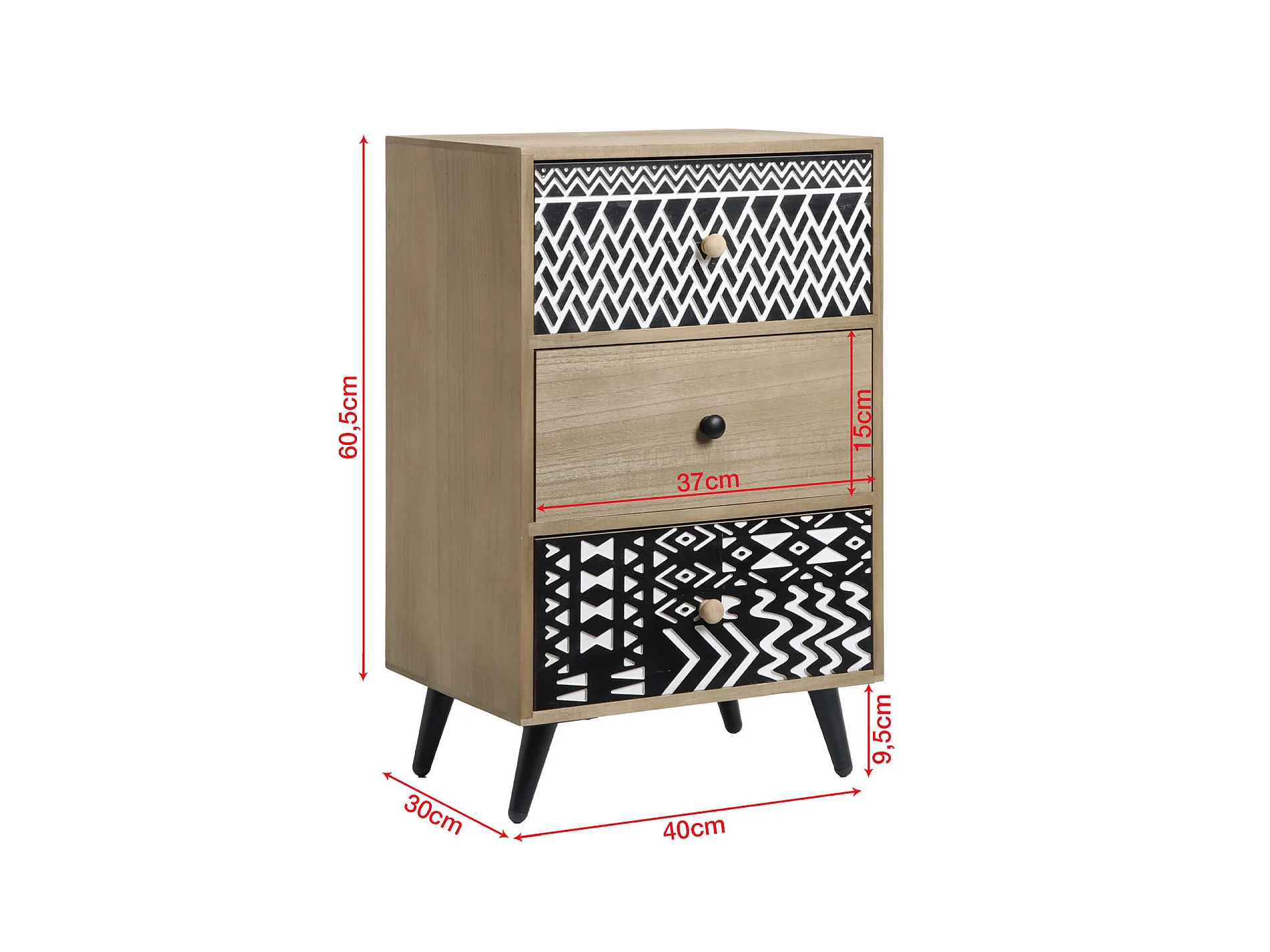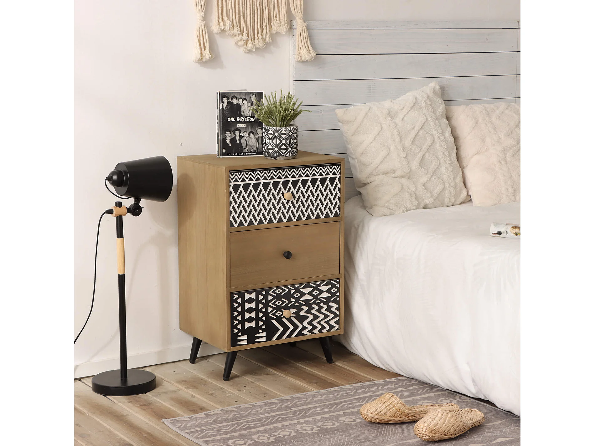 Table de Chevet avec 3 Tiroirs en Bois et Métal Style Boho Scandinave
