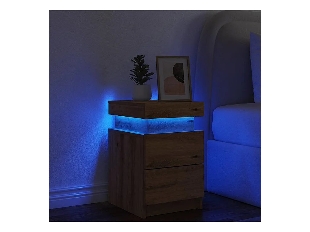 Table de chevet avec LED chêne artisanal bois d'ingénierie