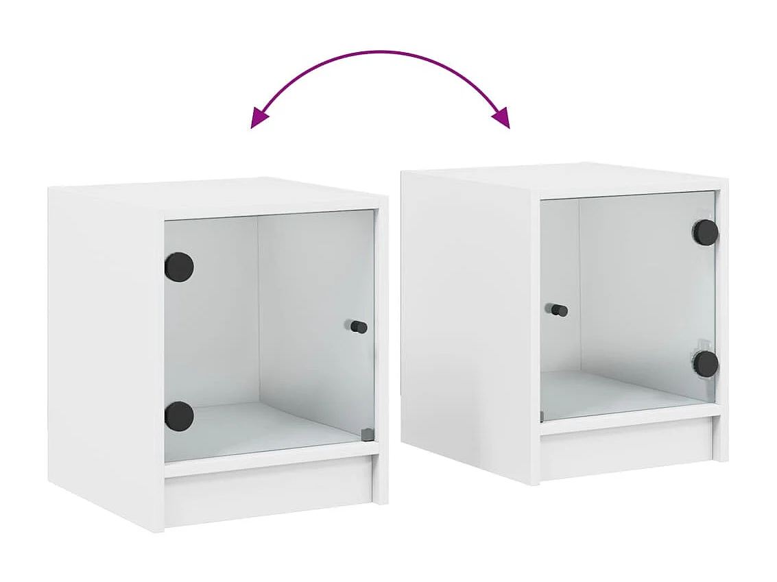 Tables de chevet avec portes en verre 2 pcs blanc 35x37x42