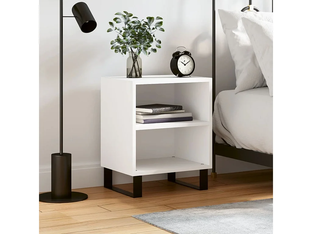 Table de chevet avec pieds en métal Blanc 40x30x50 2