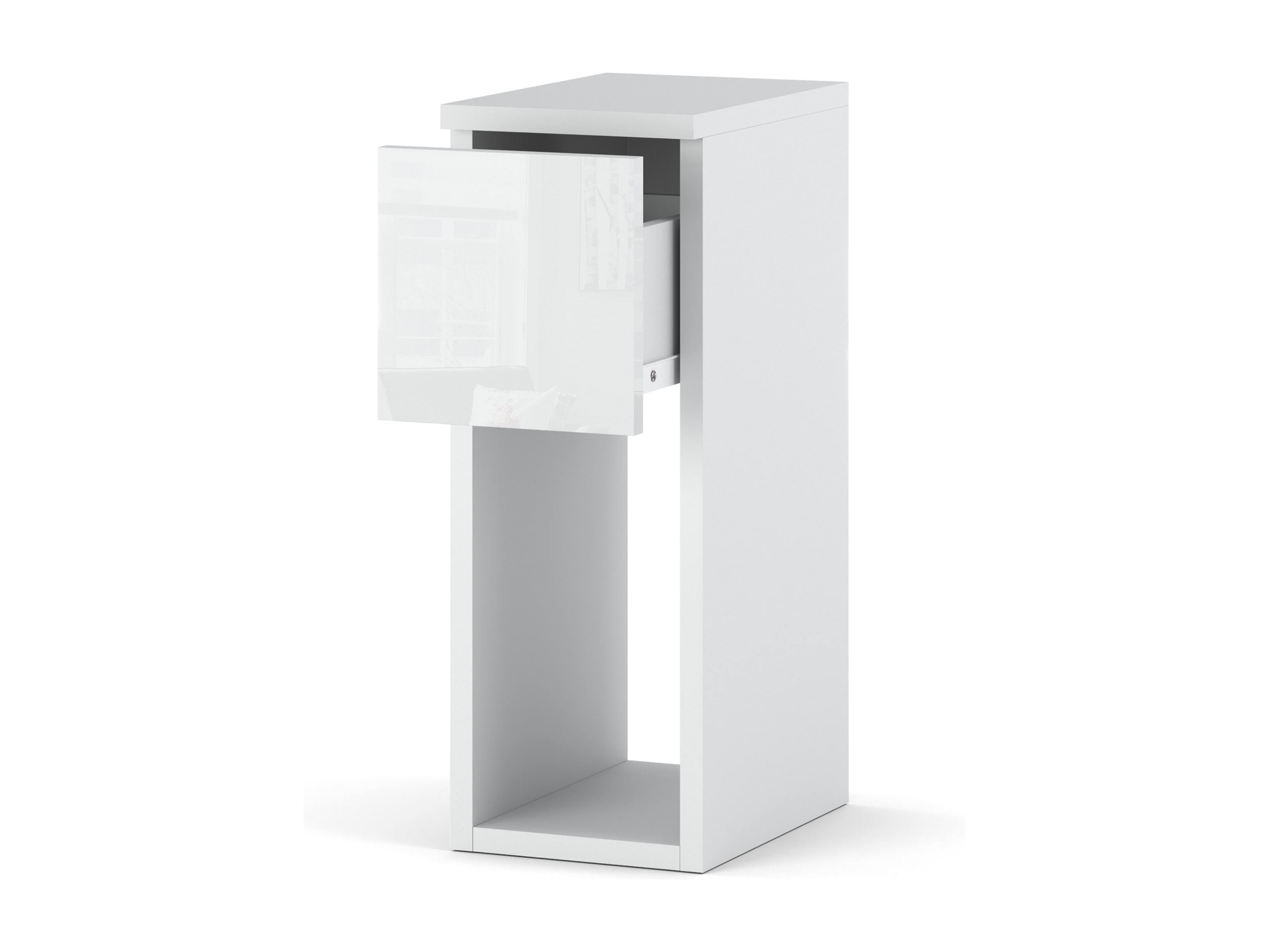 Table de chevet blanc brillant et mat 20 cm - table d'appoint moderne avec tiroir pour chambre à coucher