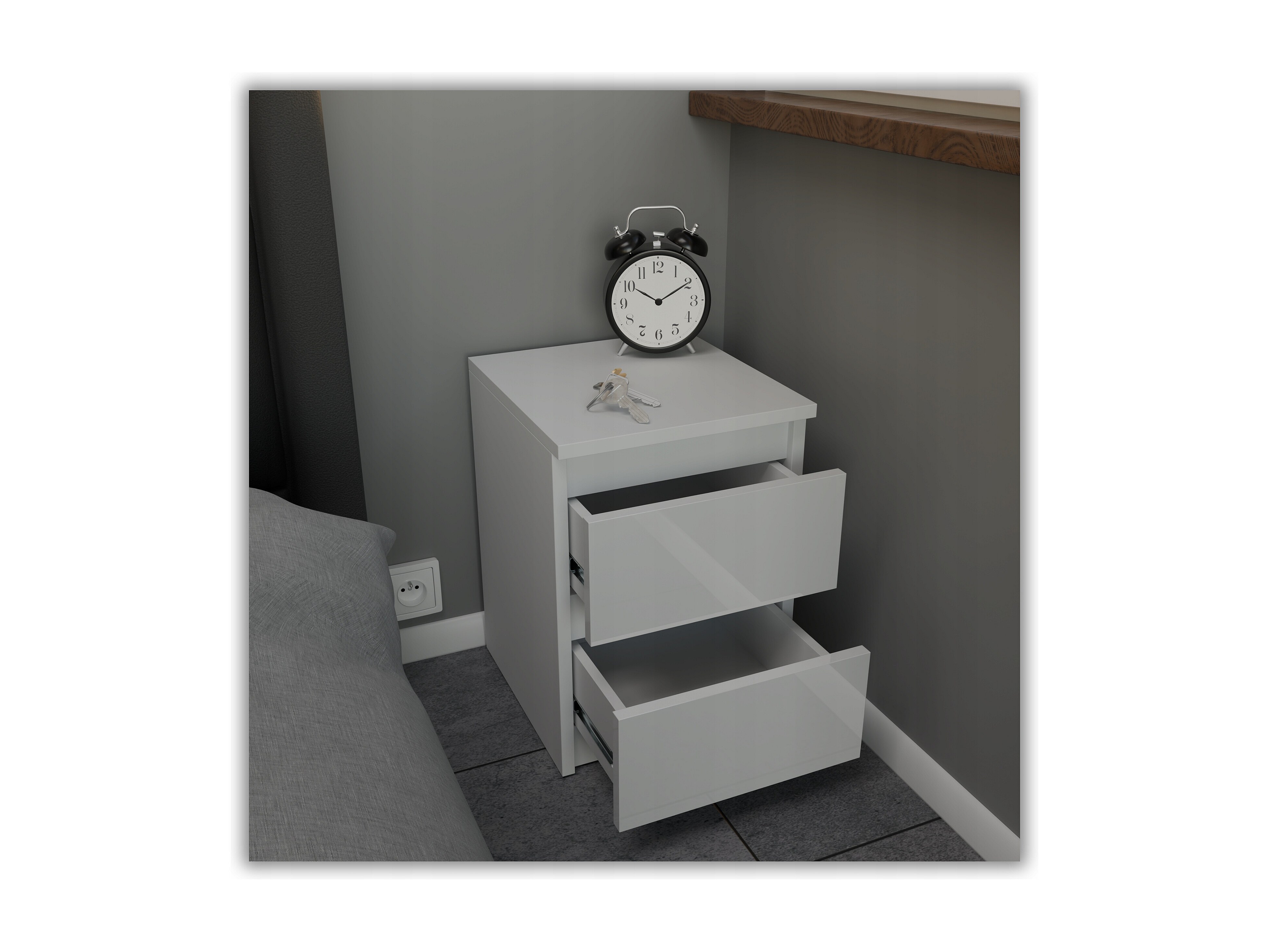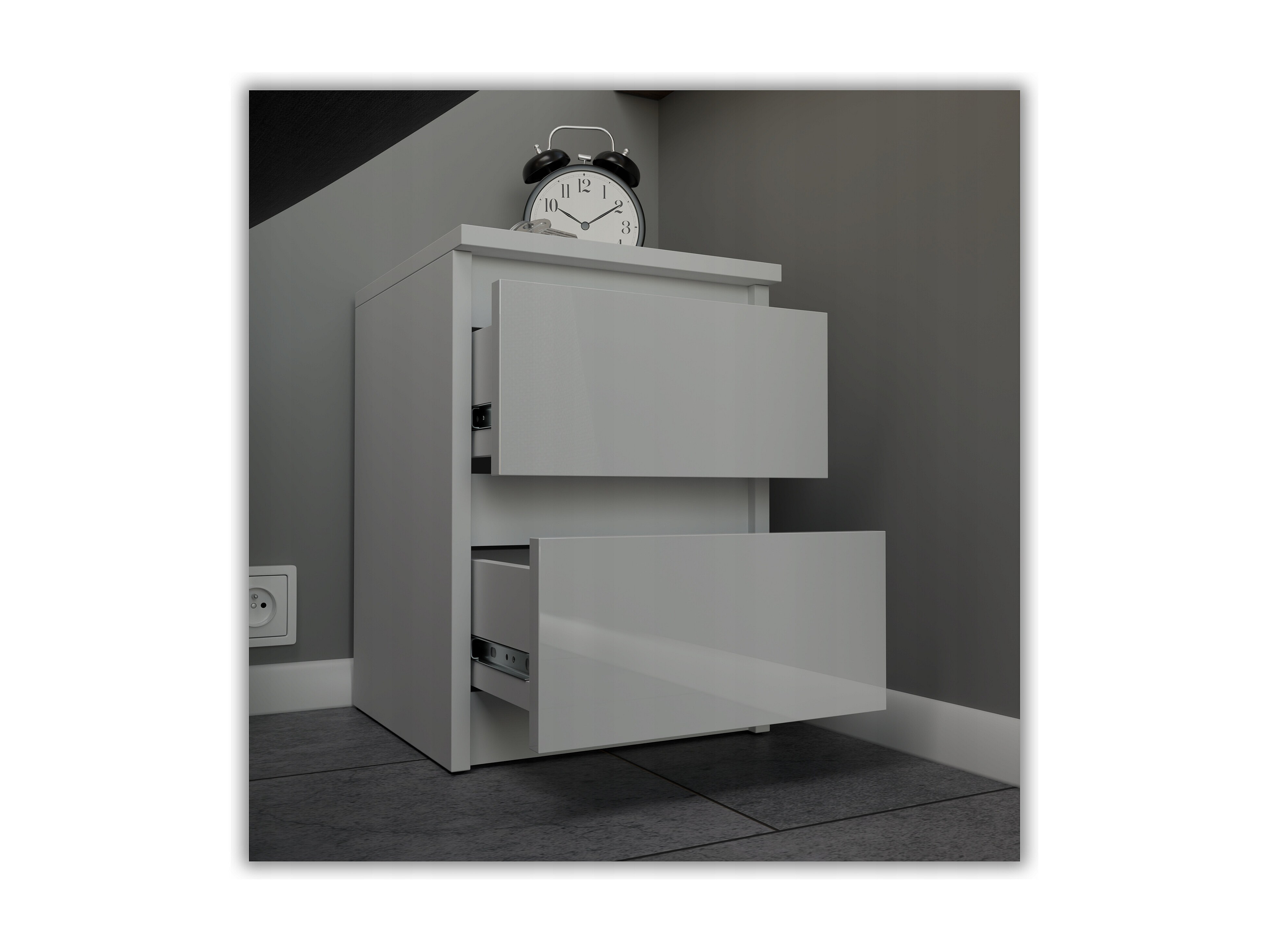 Table de chevet Blanc Mat+ Blanc brillant 30x30x42CM 2 tiroirs -meuble de nuit pour chambre à coucher loft
