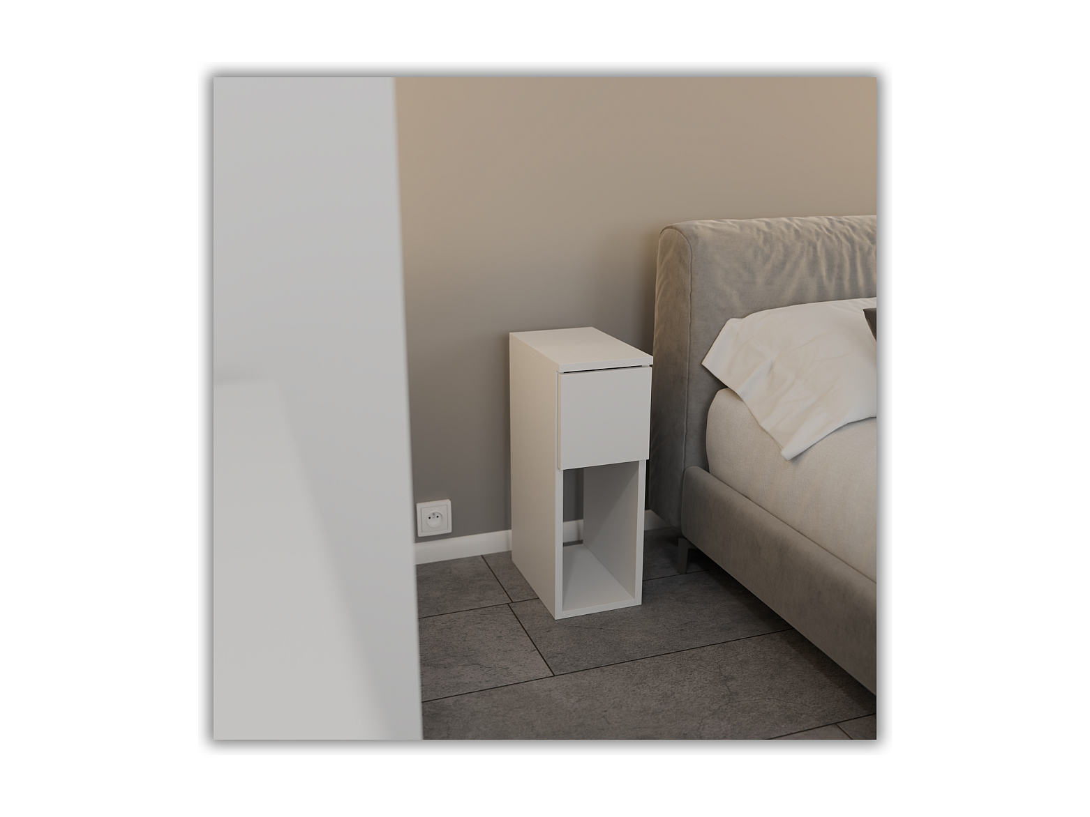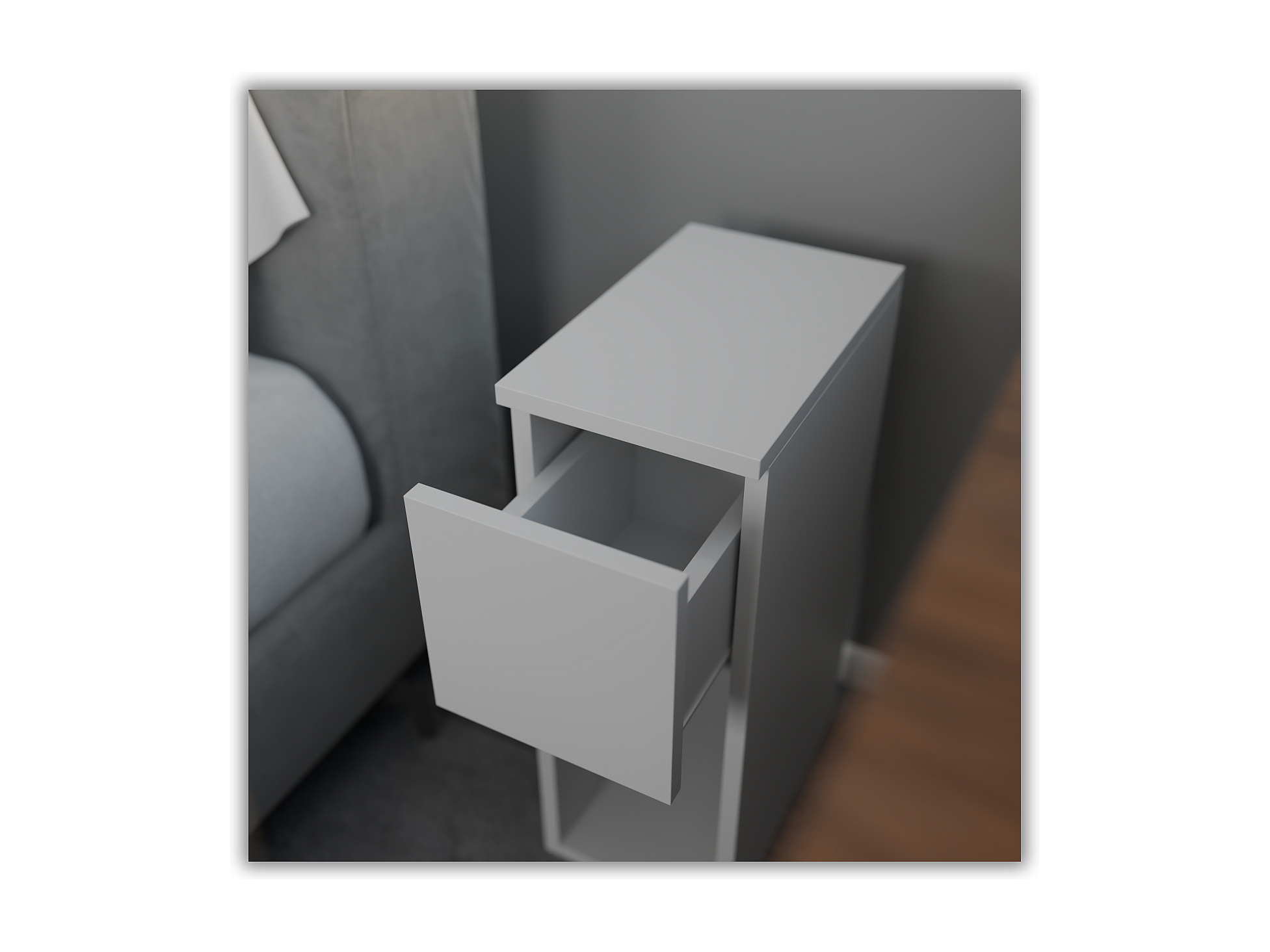 Table de chevet Blanche, étroite 20 cm, petite table de nuit loft compacte pour chambre