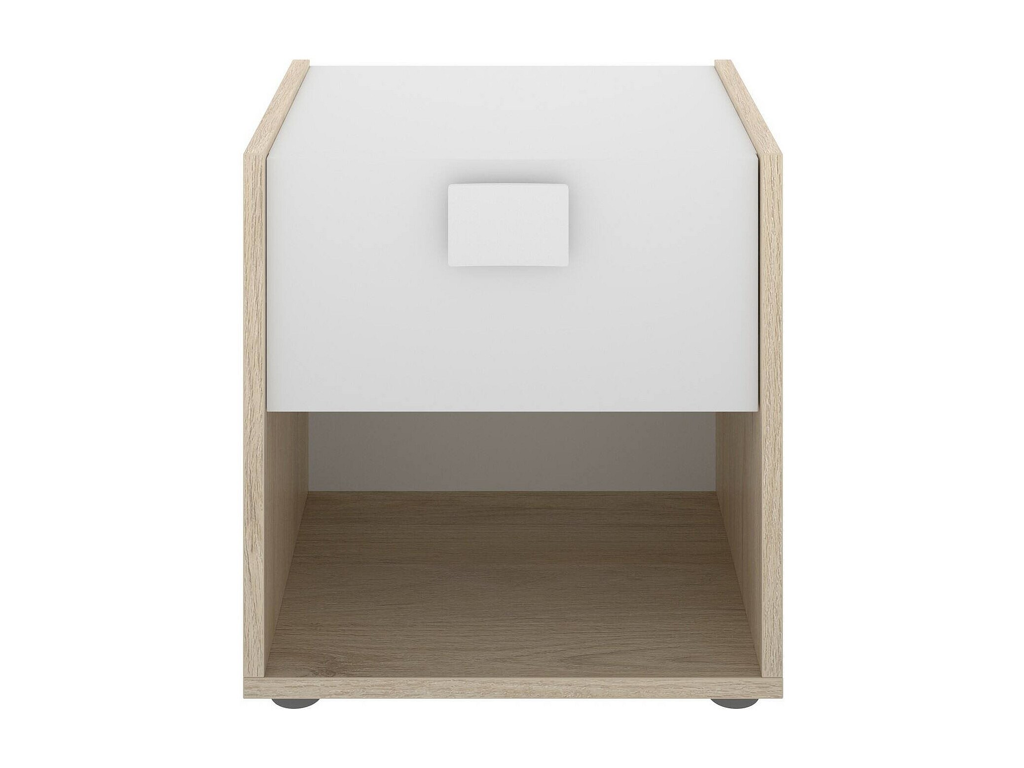 Table de chevet Catinaccio, Table de nuit, Commode basse avec 1 tiroir, 40x33h42 cm, Blanc et Chêne