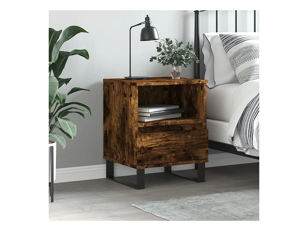 Table de chevet chêne fumé 40x35x50 cm bois d'ingénierie QPD55367