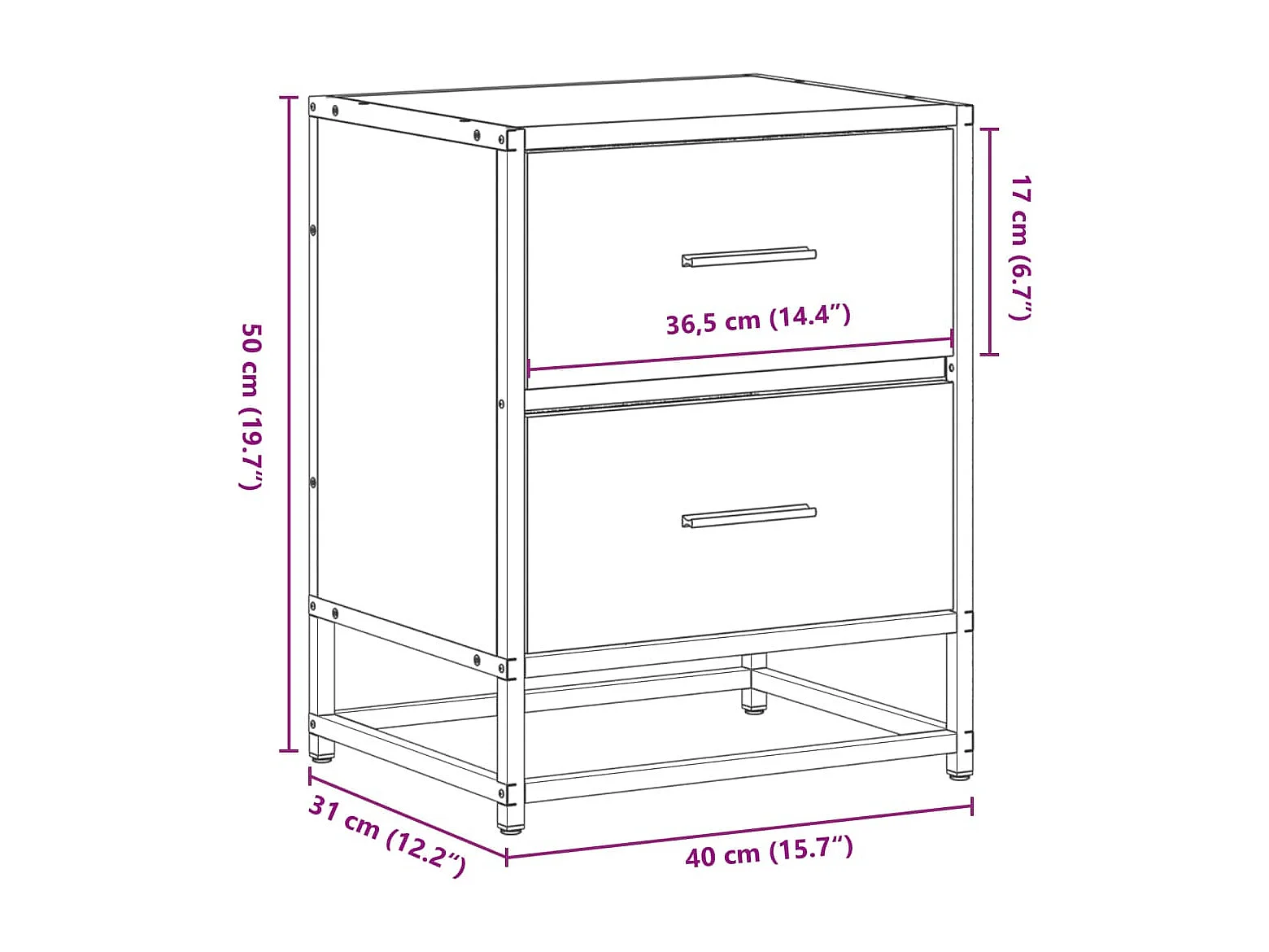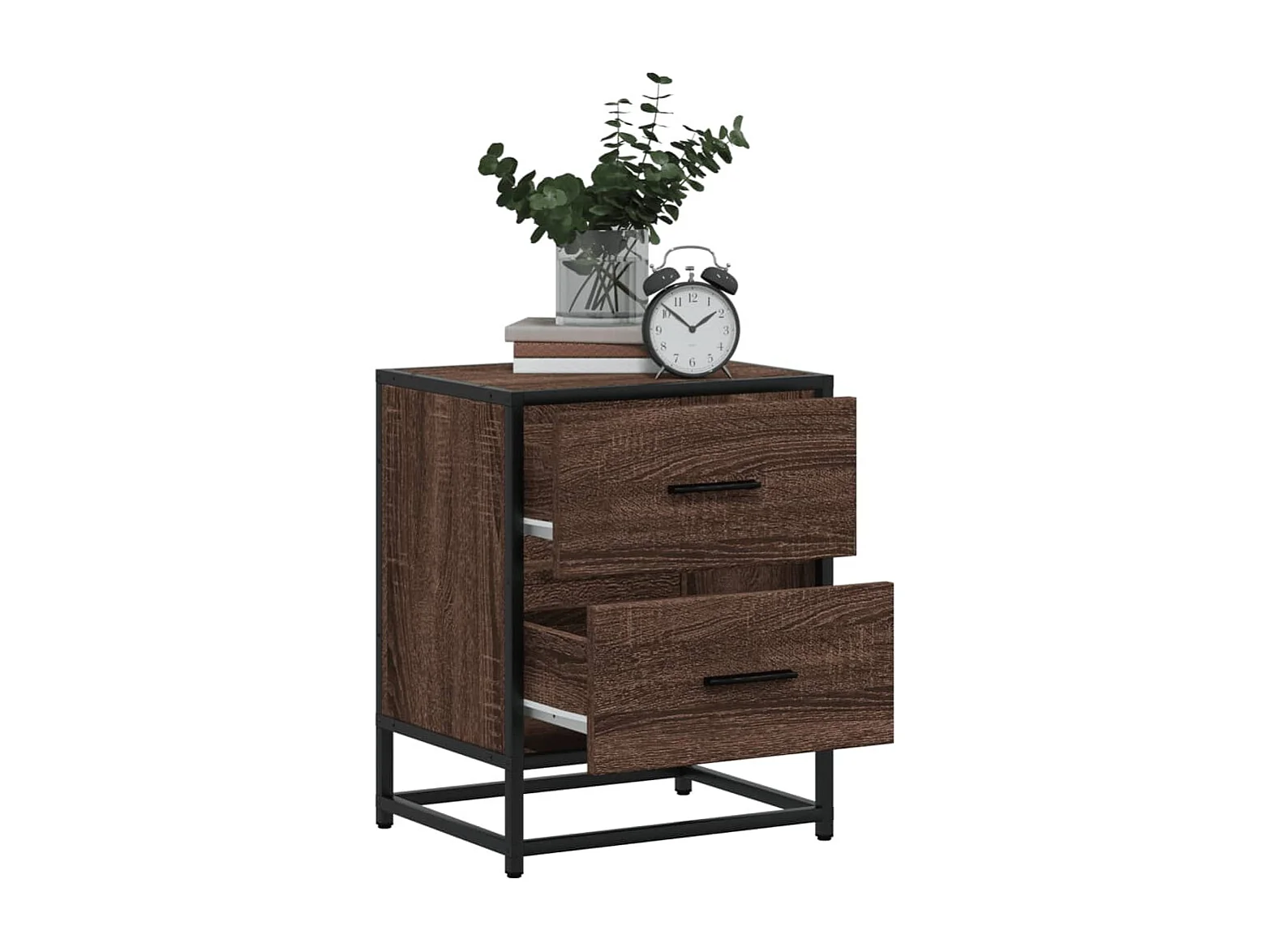 Table de chevet chêne marron 40x31x50cm bois d'ingénierie métal