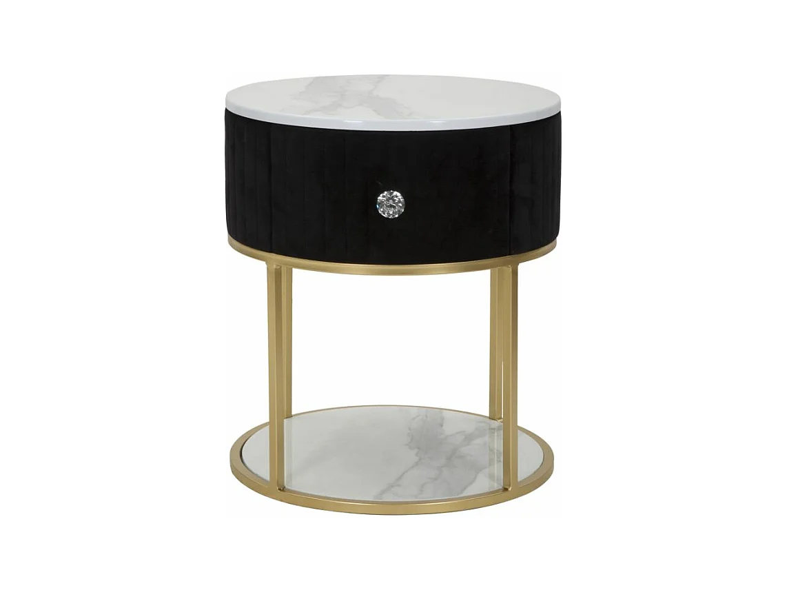Table de chevet en métal tissu bois doré noir et blanc Ø 42x48 cm