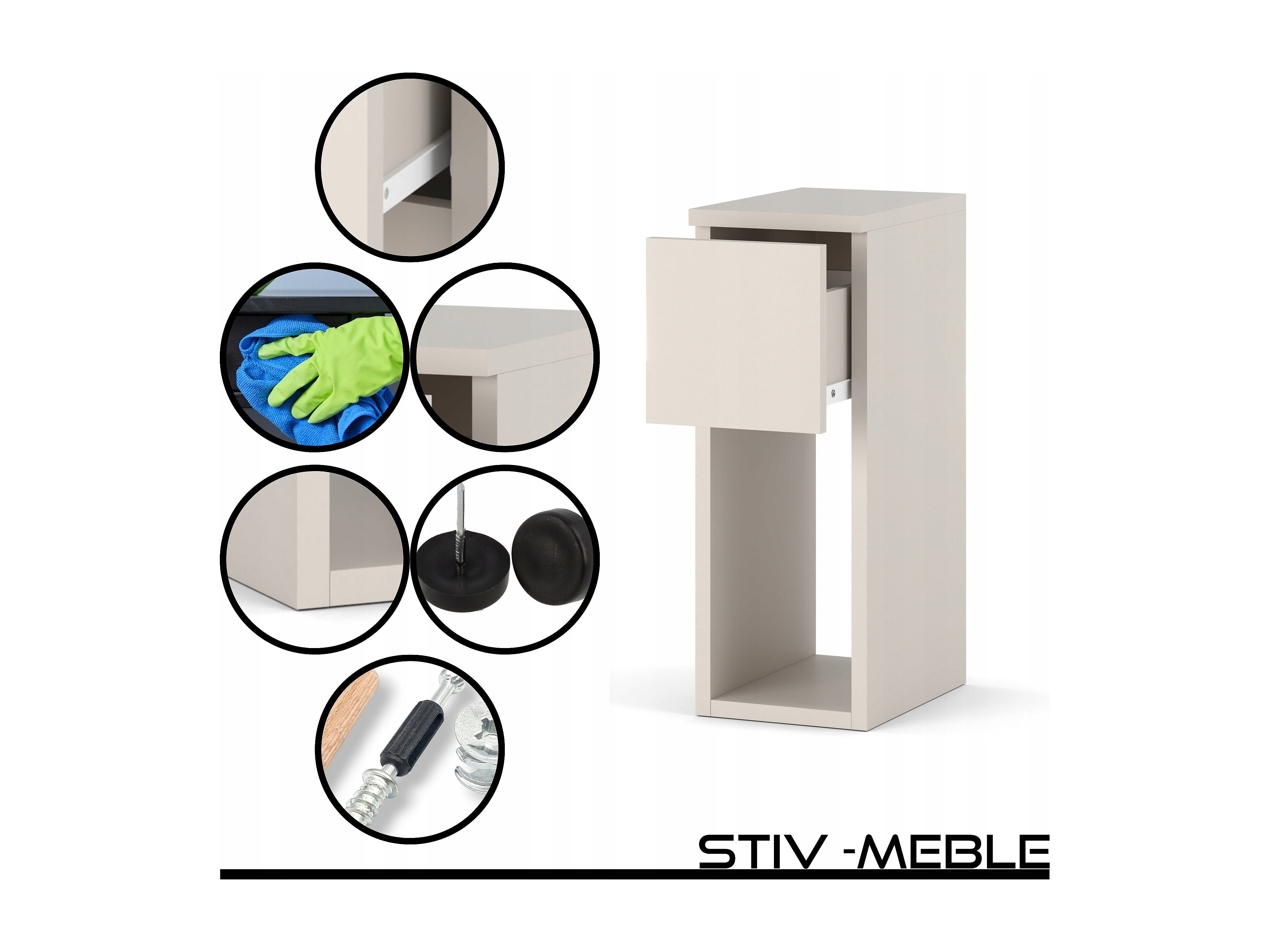 Table de chevet étroite 20 cm couleur Cachemire Beige, petite table de nuit pour chambre
