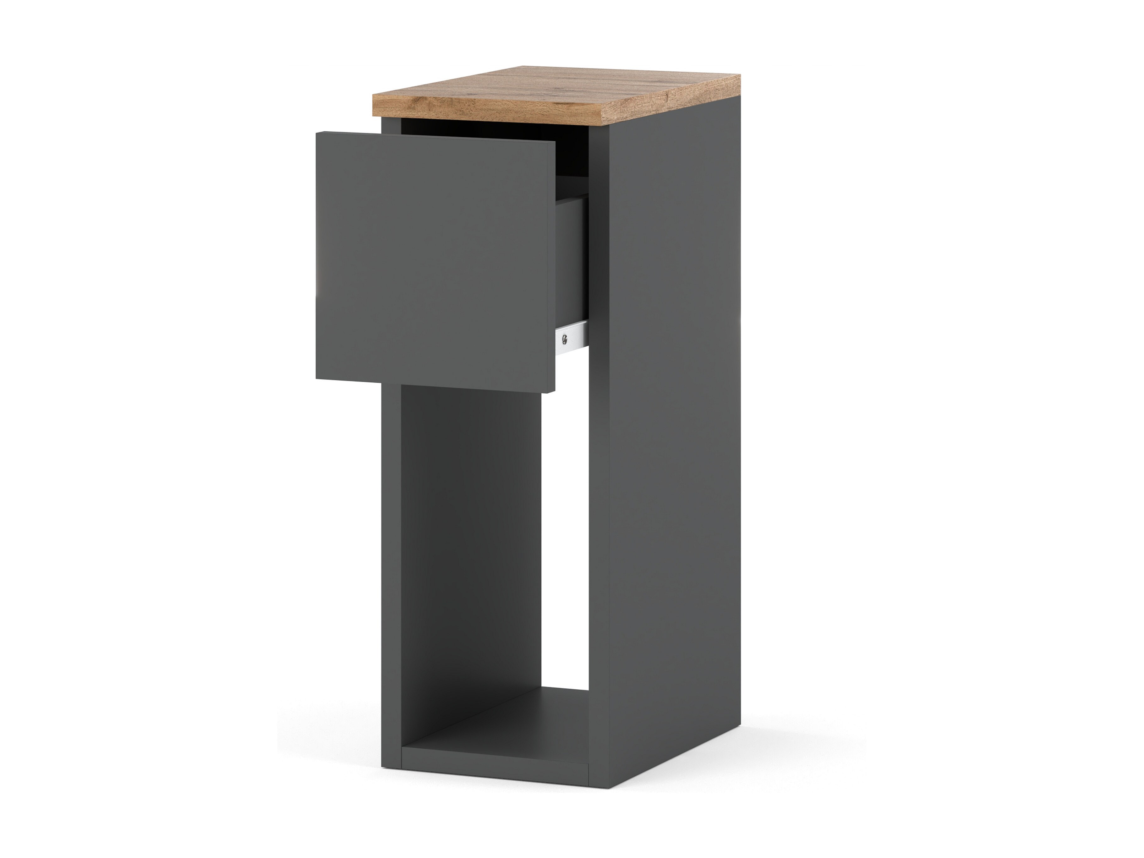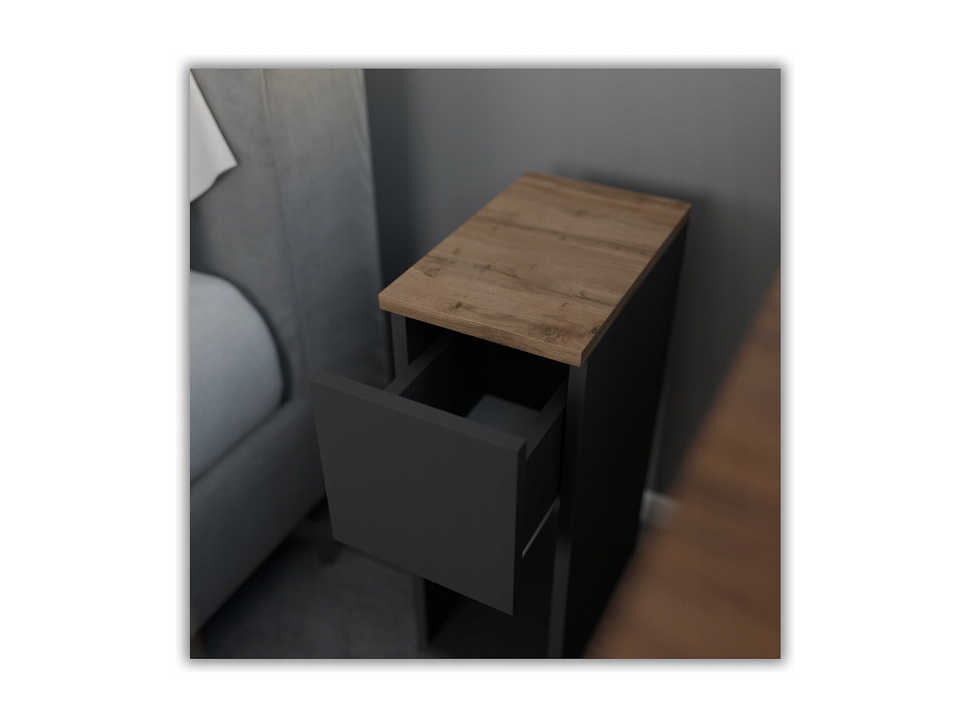 Table de chevet noire et chêne Wotan, étroite 20 cm, petite table de nuit loft compacte