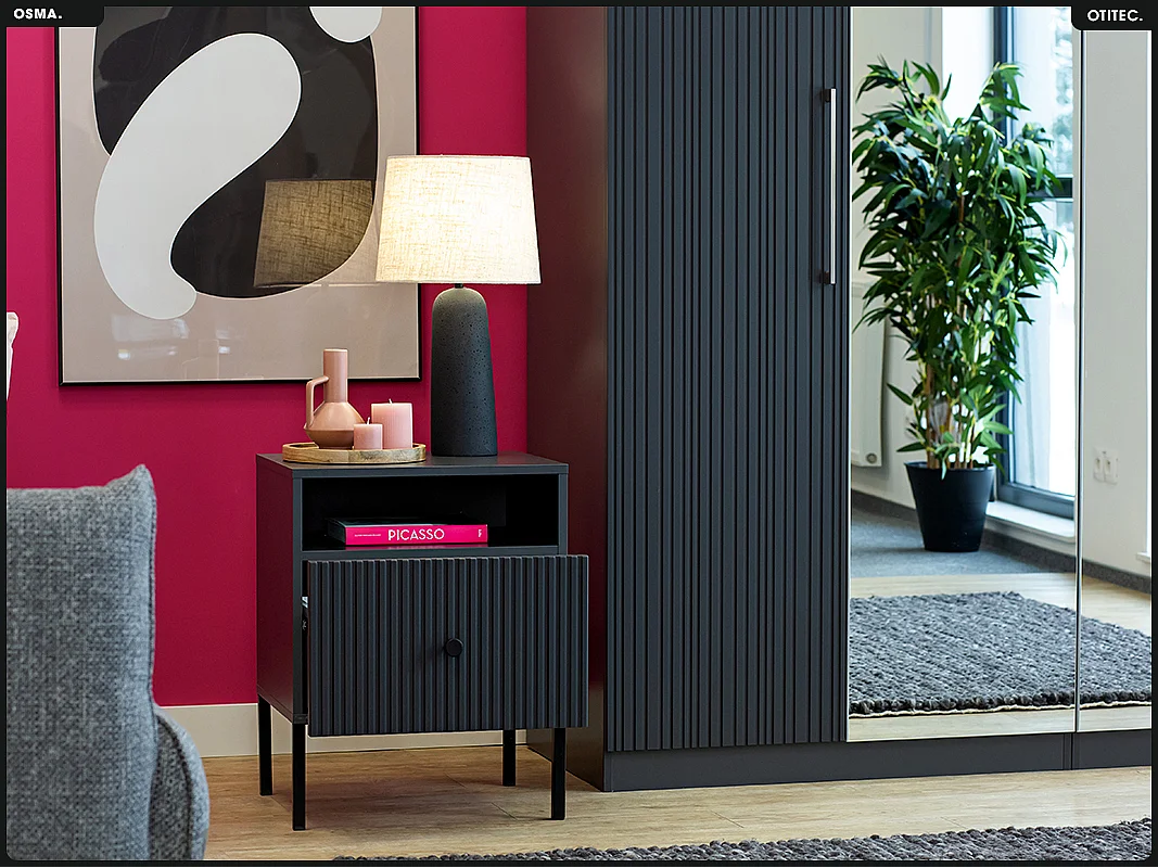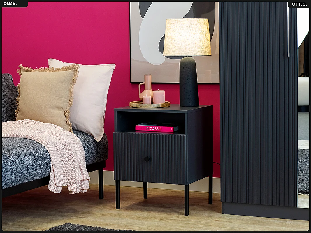 Chevet LINA 2 tiroirs – Blanc et noir – 71 x 42 x 45 cm