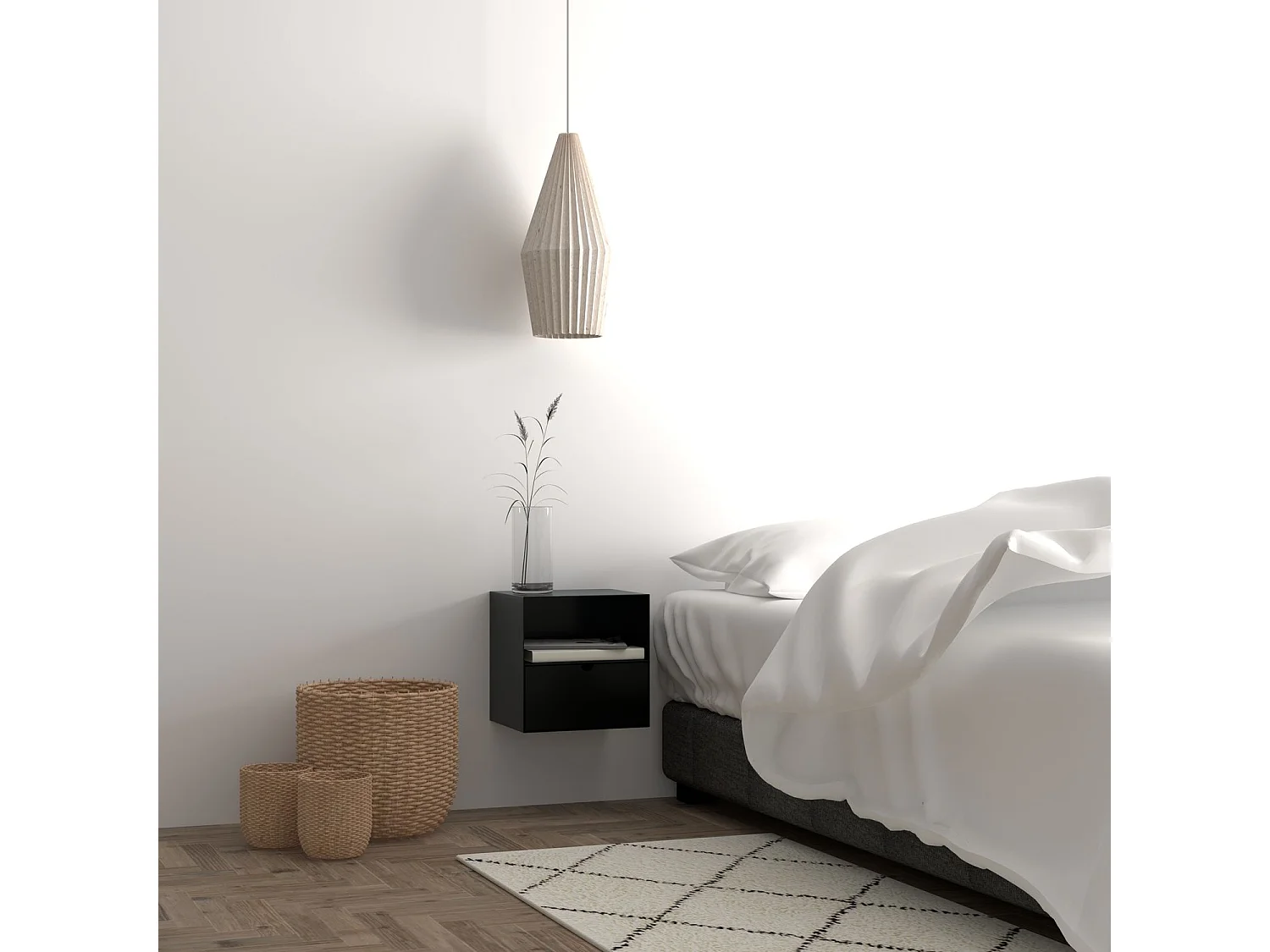 Joliet Table de chevet murale avec 1 tablette de rangement et 1 tiroir, noir.