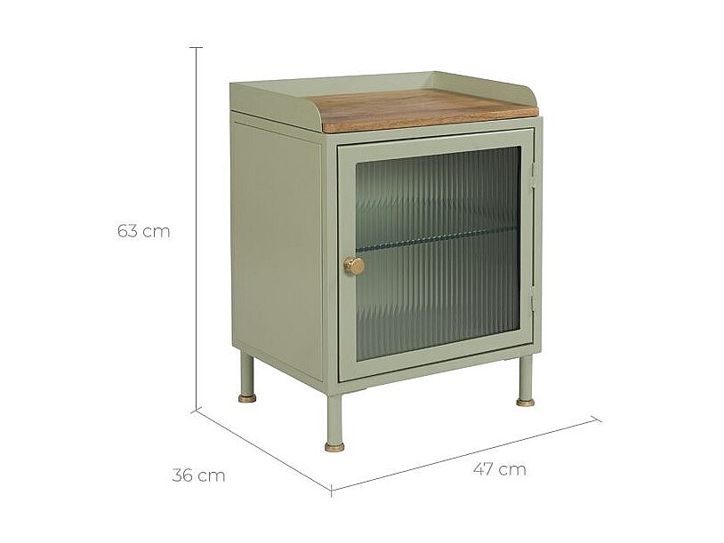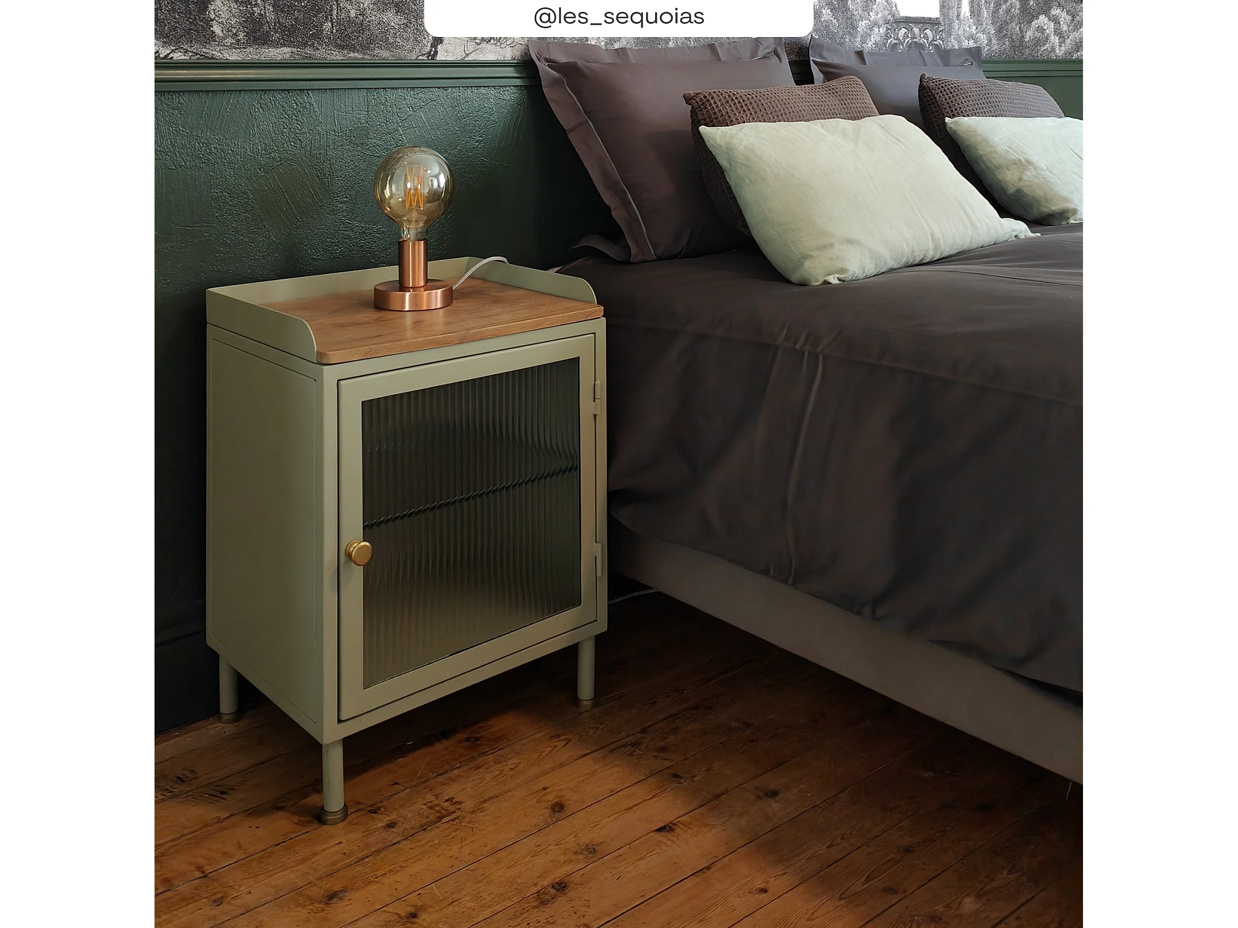 Table de chevet en verre, métal et bois 1 porte - Marnie