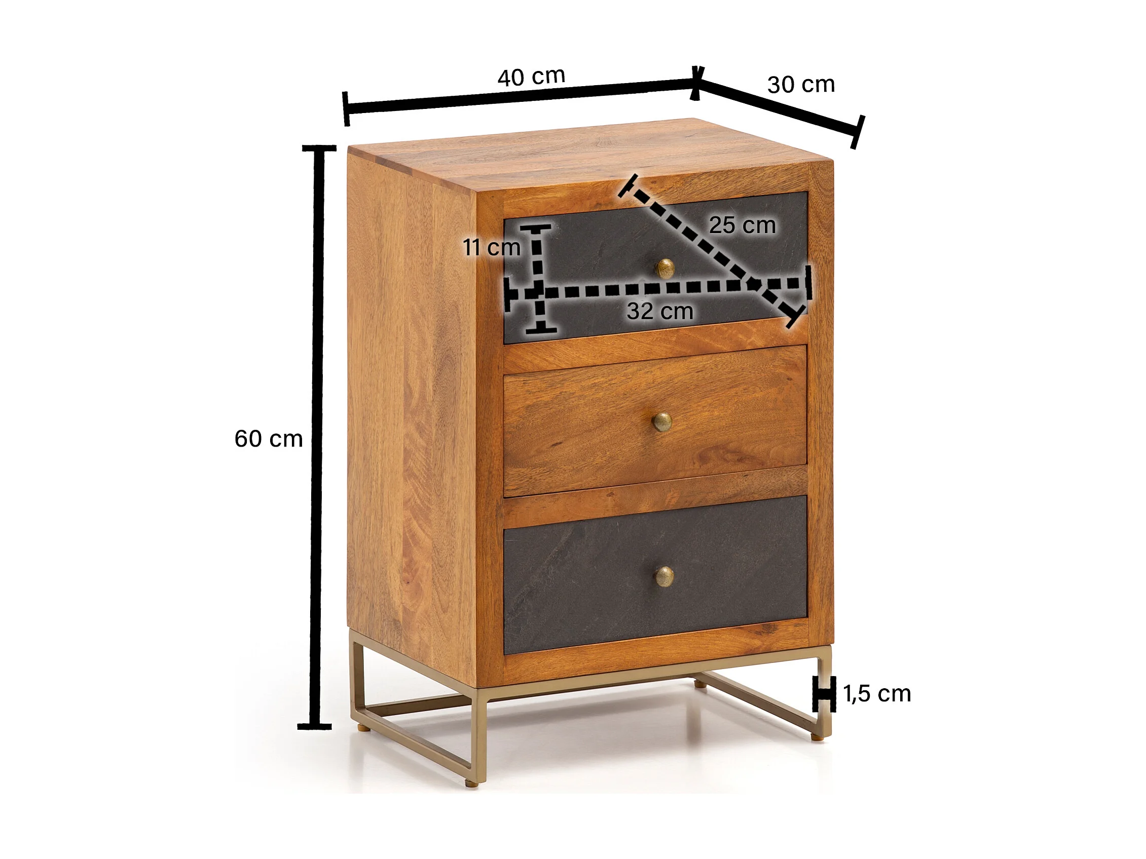 Table de chevet 40x30x50 cm bois massif manguier et fer
