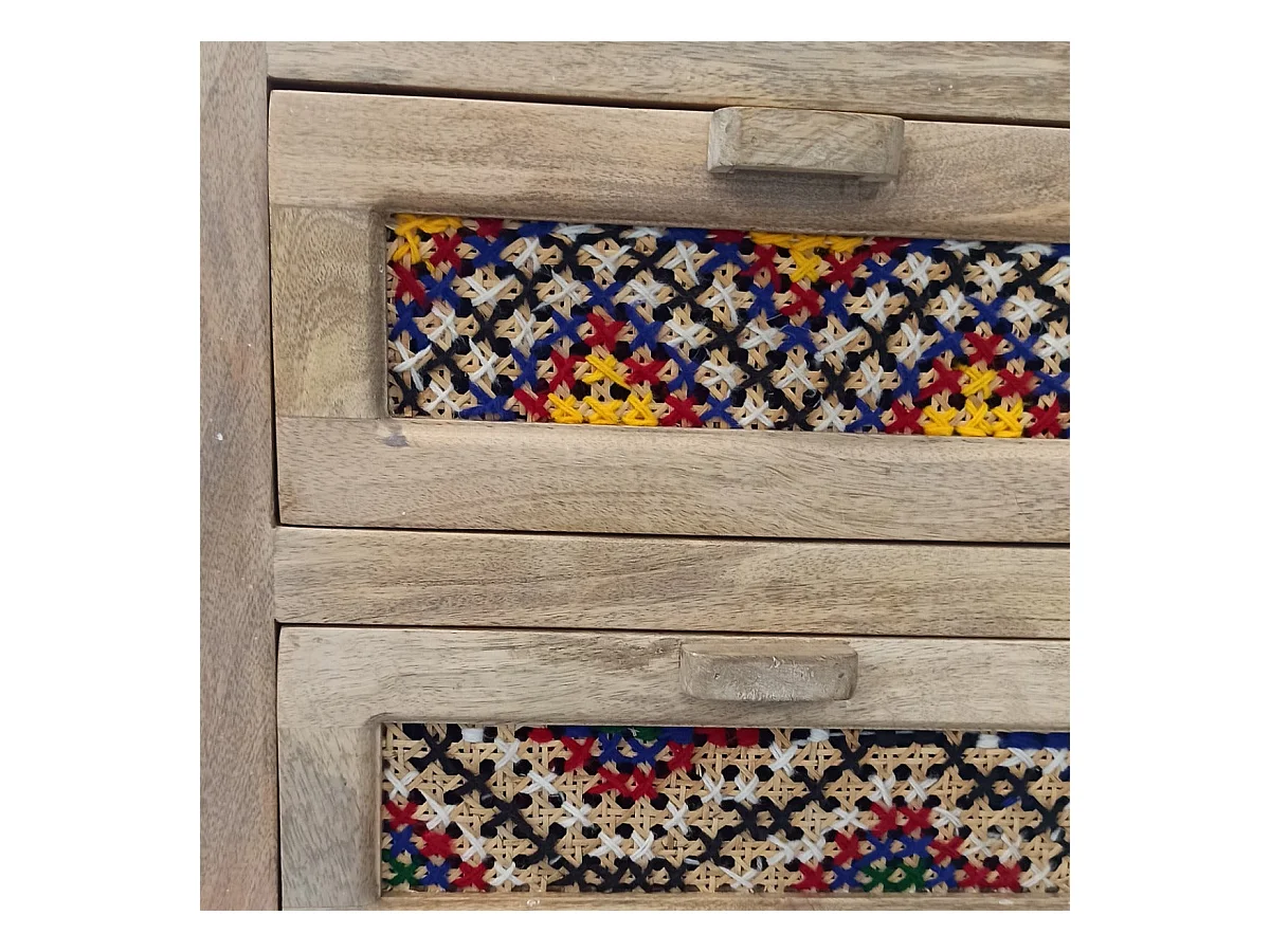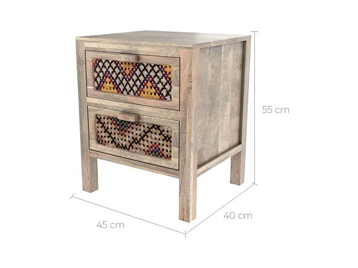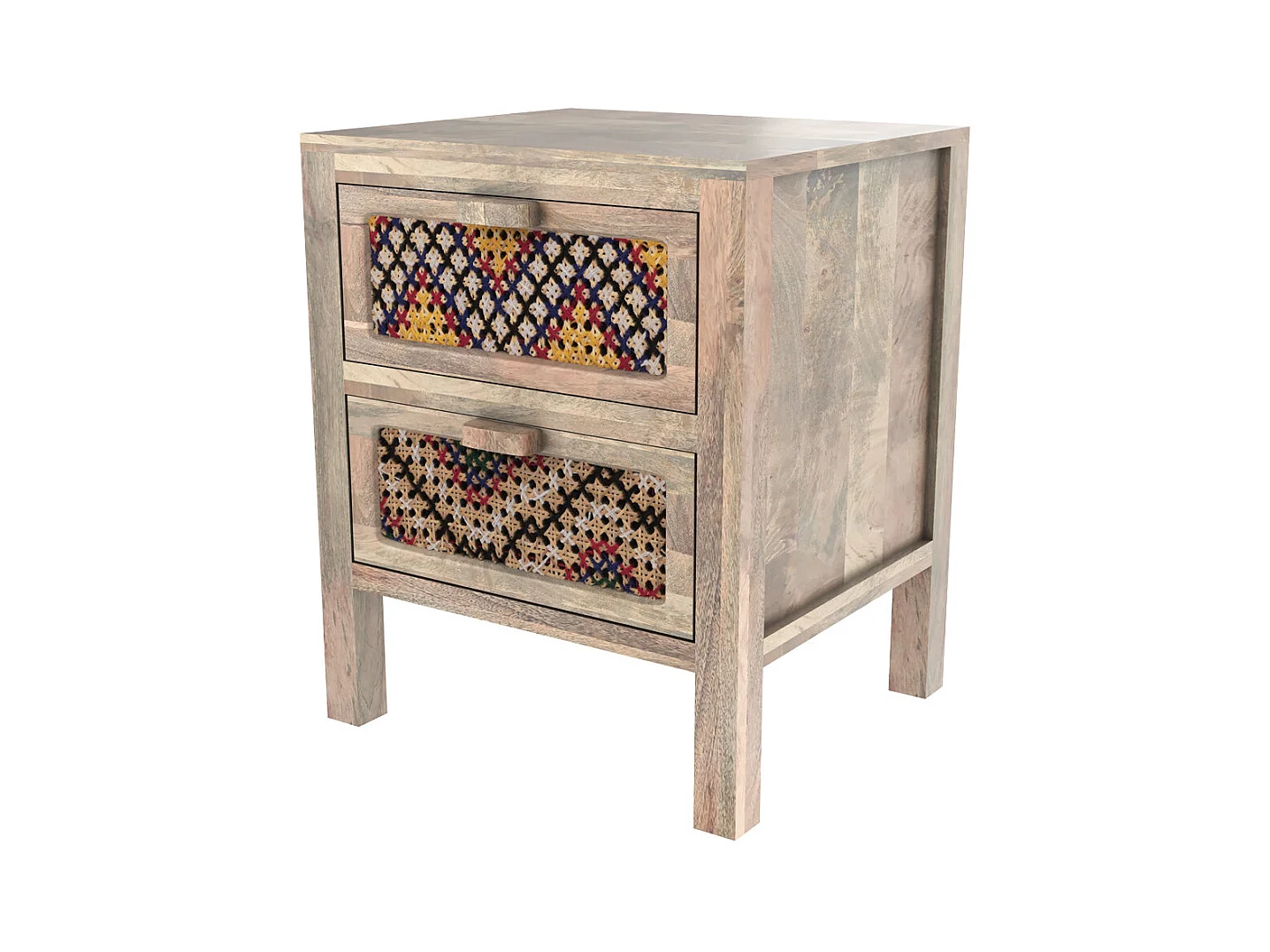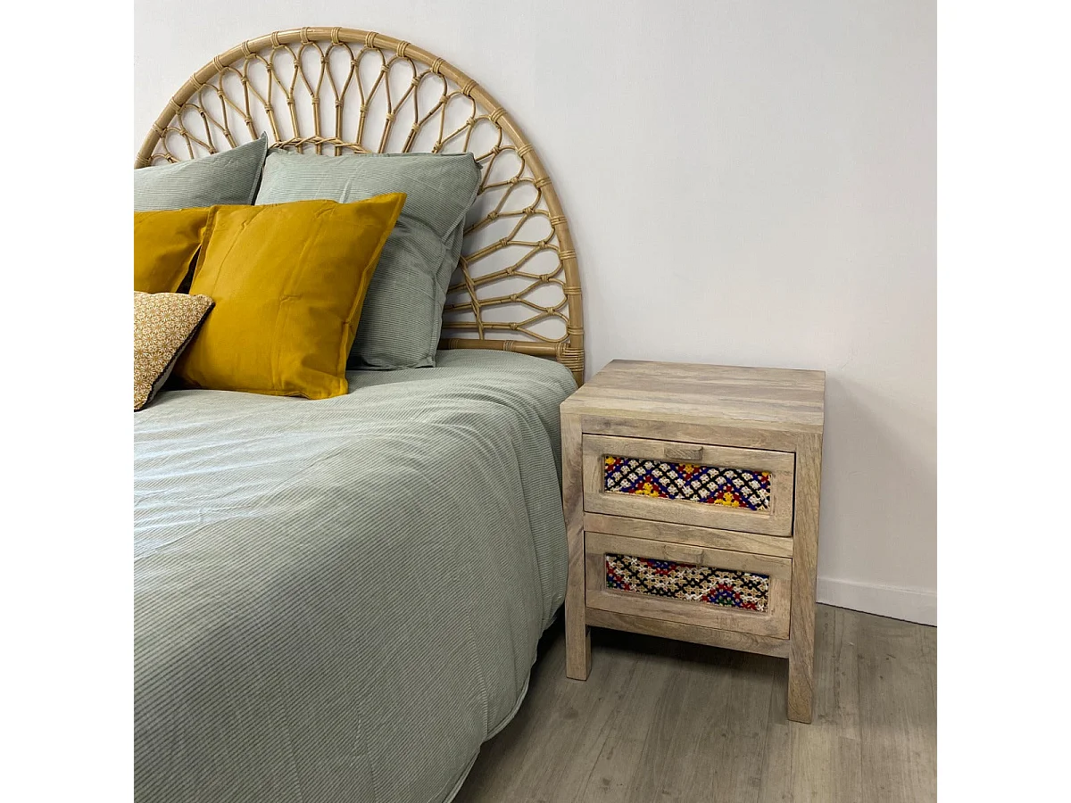 Table de chevet 2 tiroirs en manguier et cannage coloré - Massaï