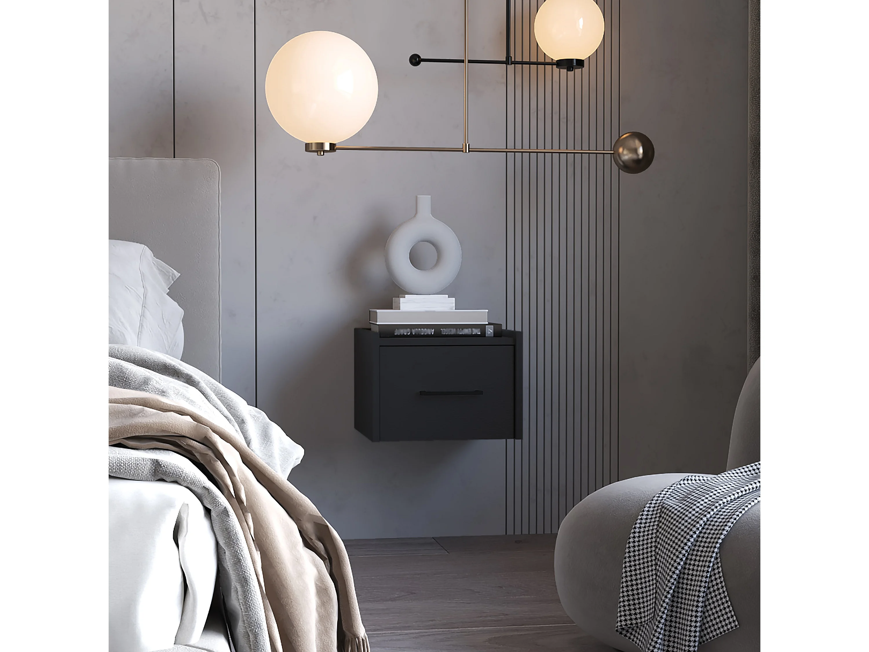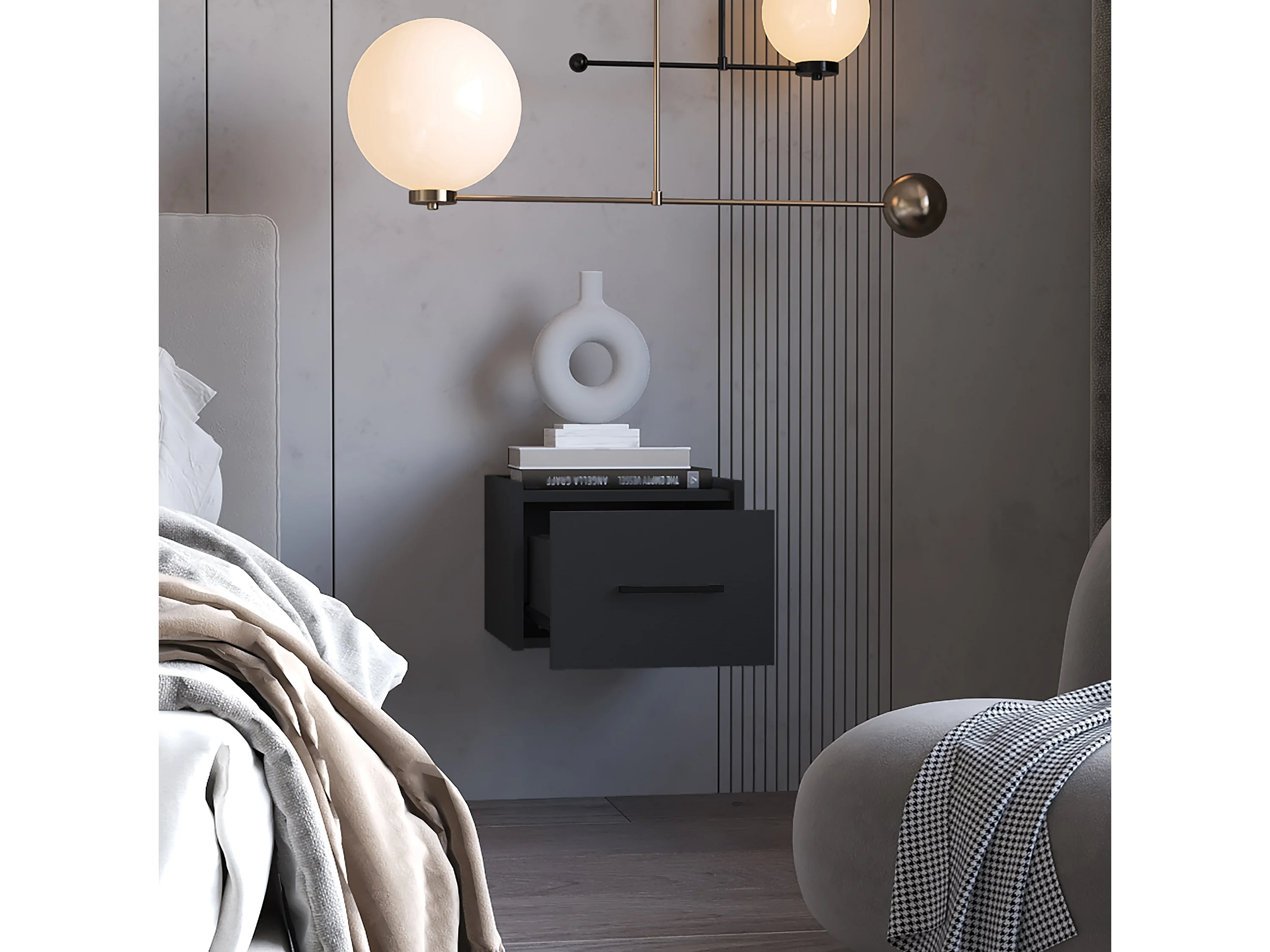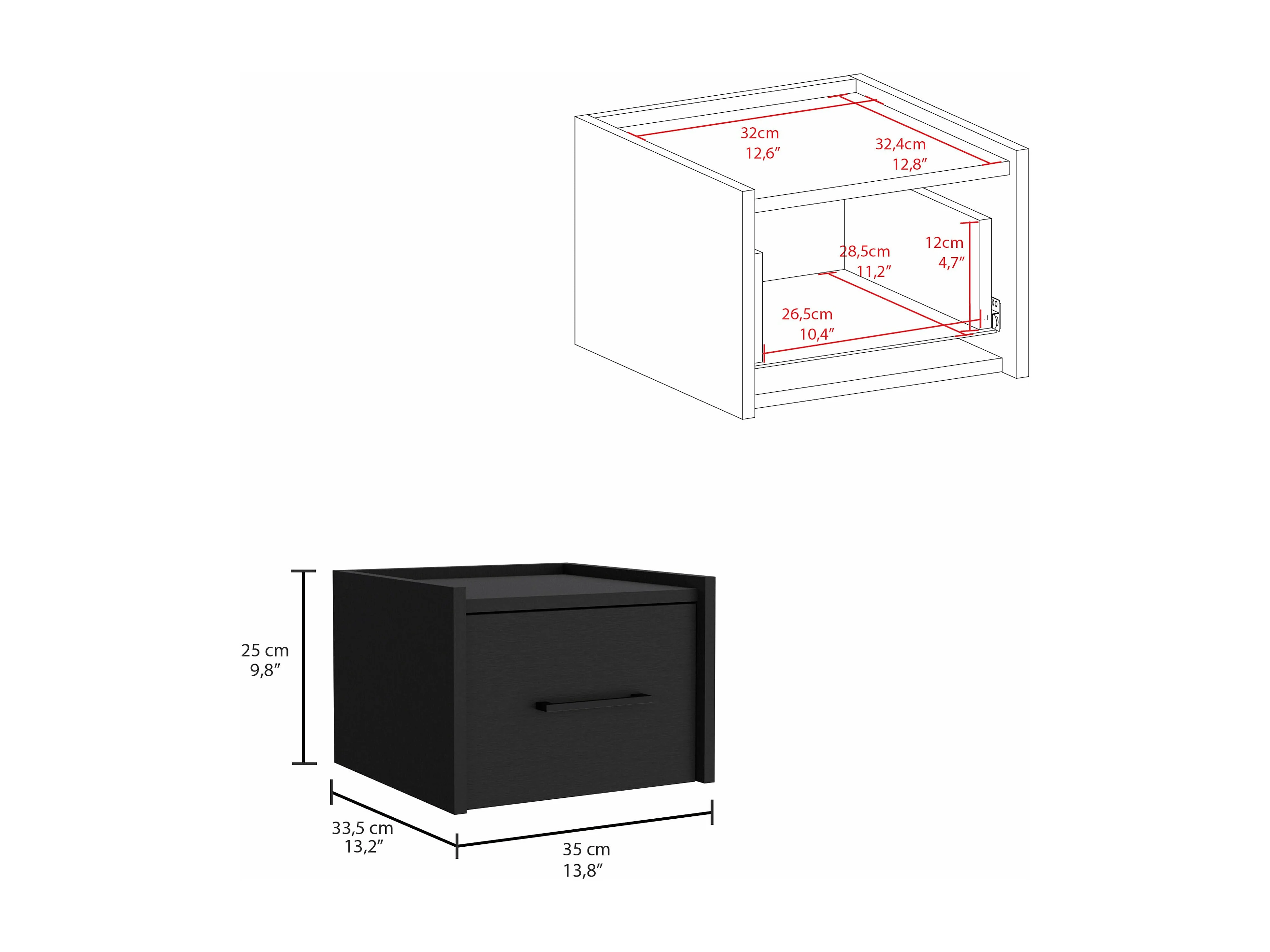 Table de chevet suspendue - 1 tiroir et 1 niche - Noir - RITAMI