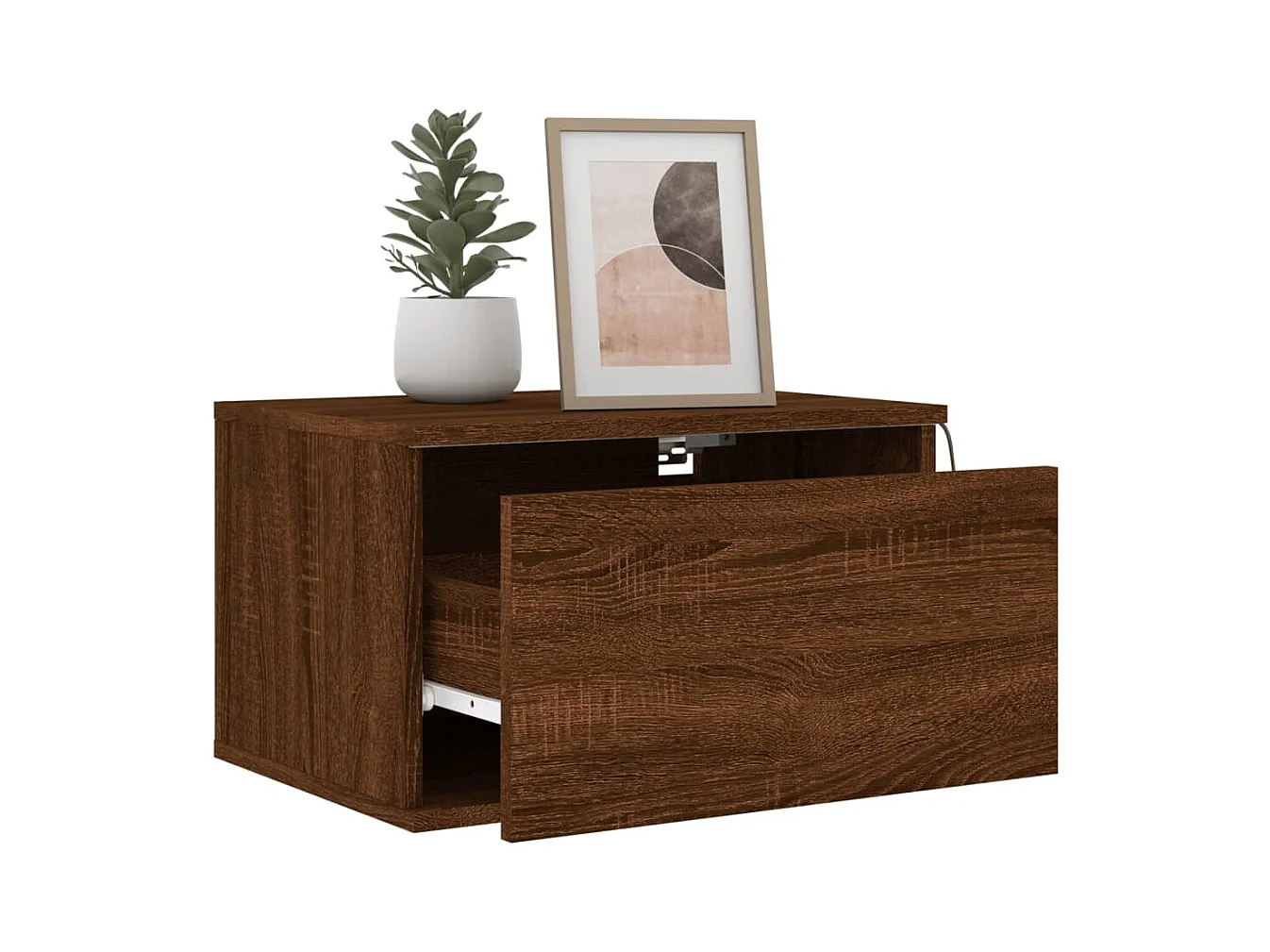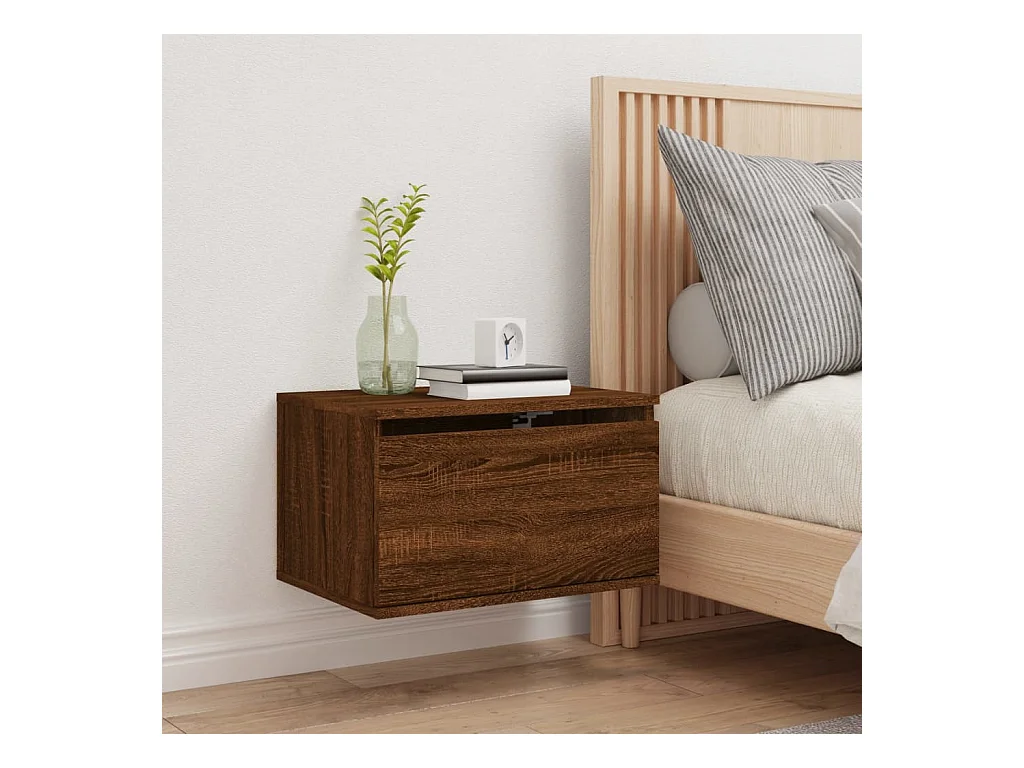 Tables de chevet murales avec lumières LED 2 pièces chêne marron