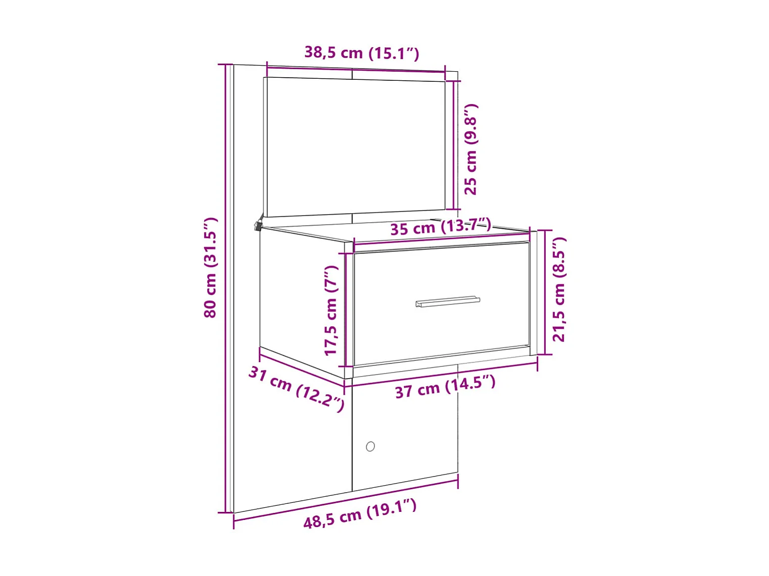 Tables de chevet murales avec lumières LED 2 pcs gris béton