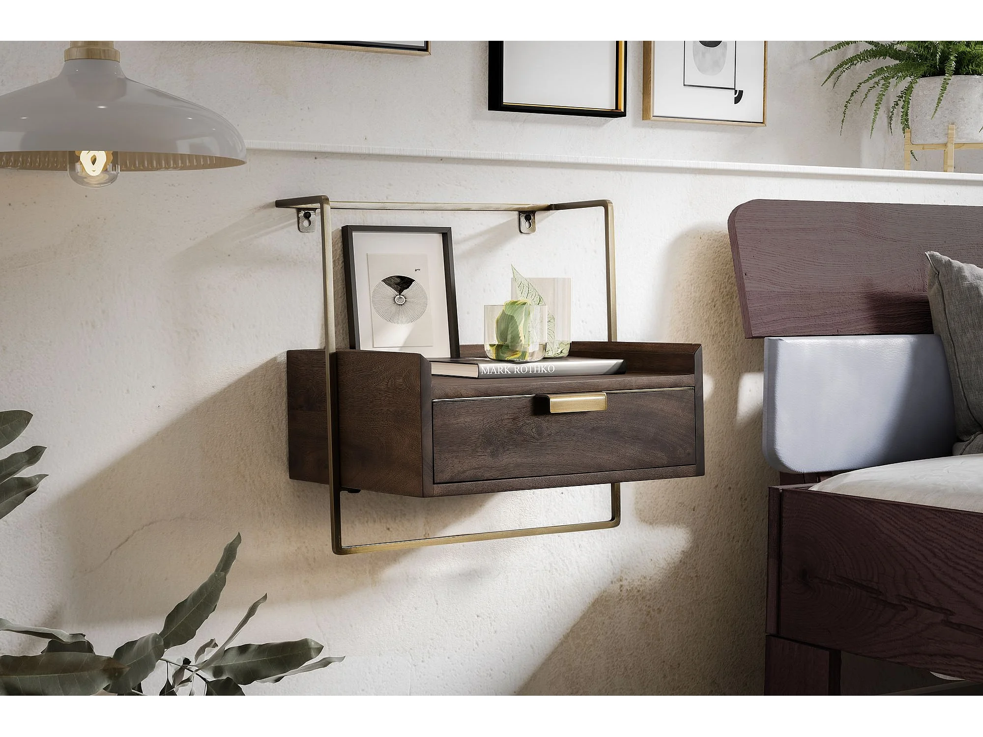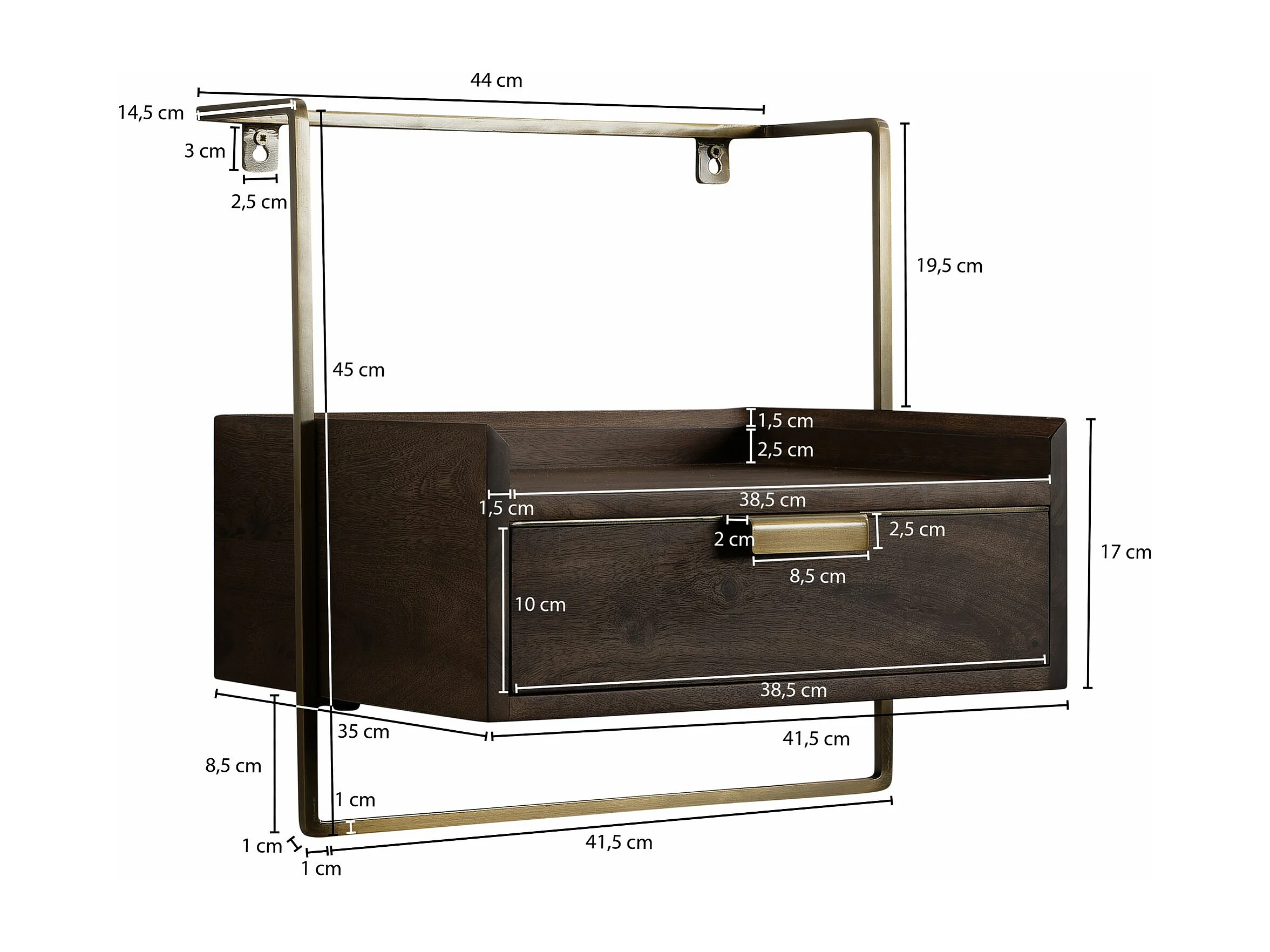 Table de Chevet Murale Bois Massif Métal Flottante de Nuit 44x45x35 cm