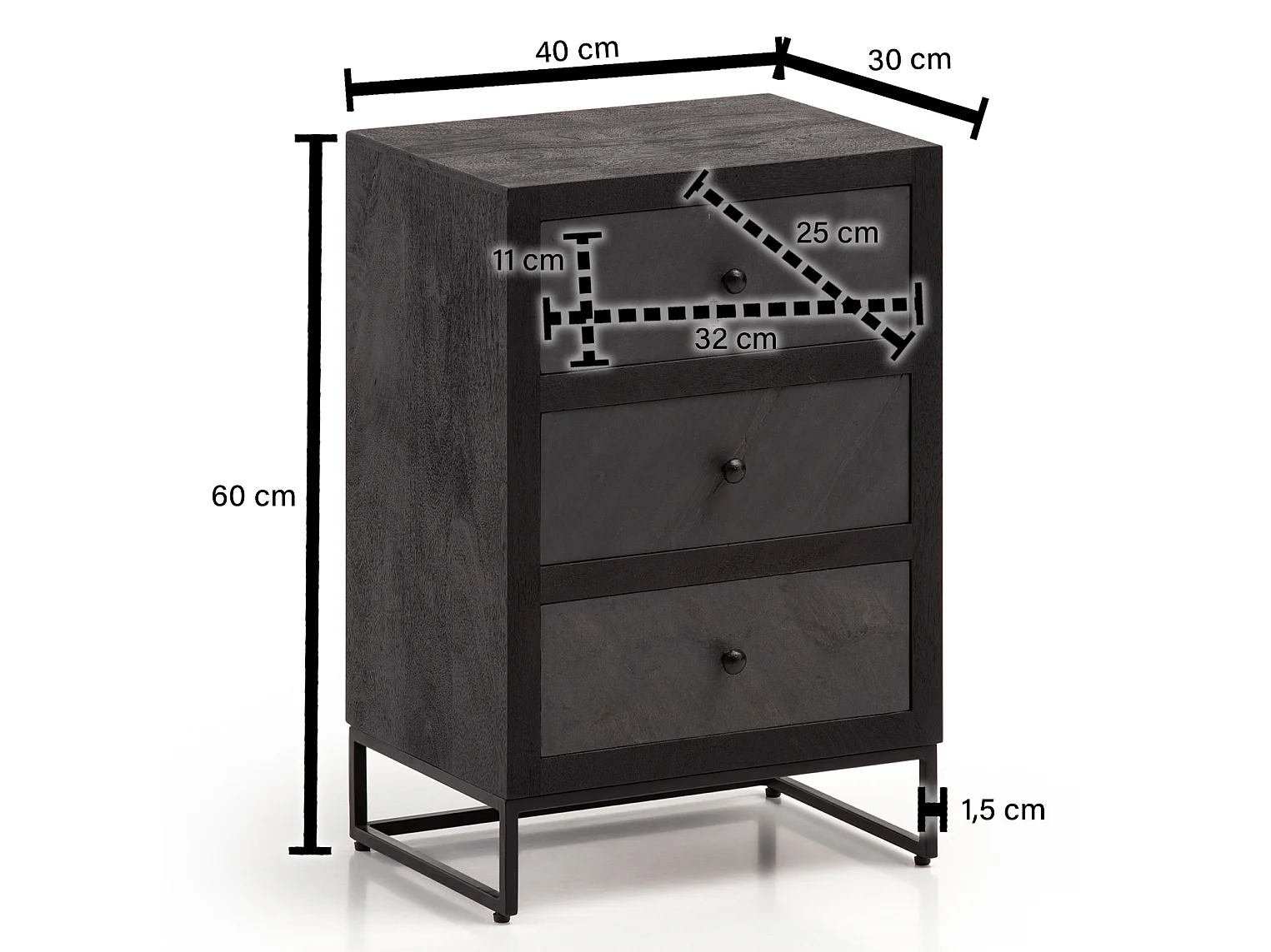 Helena-West Helena Table de chevet noir 40x33x46 cm bois de manguier solide
