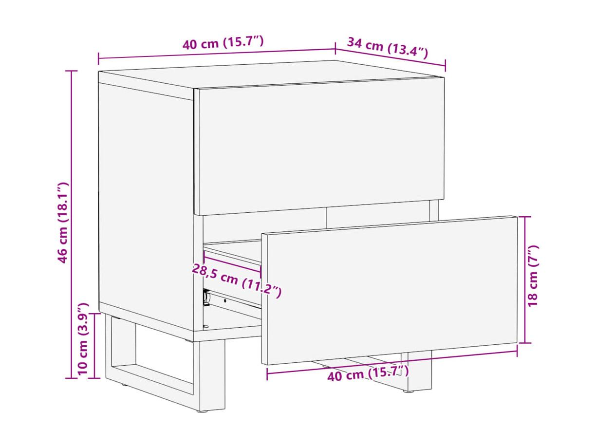Table de chevet-Table d'appoint-Table de Nuit 40x33x46 cm Bois de manguier solide