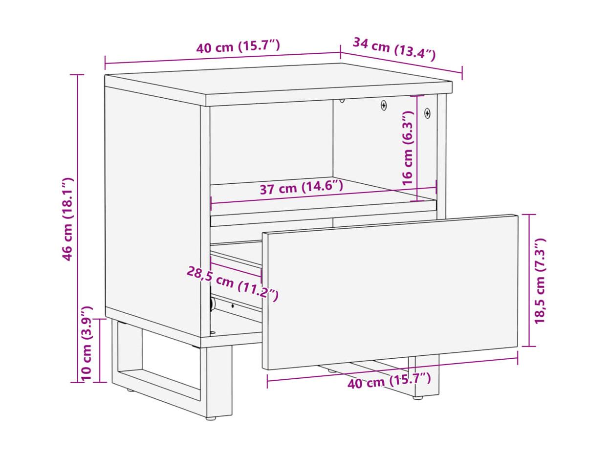 Table de chevet-Table d'appoint-Table de Nuit 40x33,5x46 cm bois de manguier solide