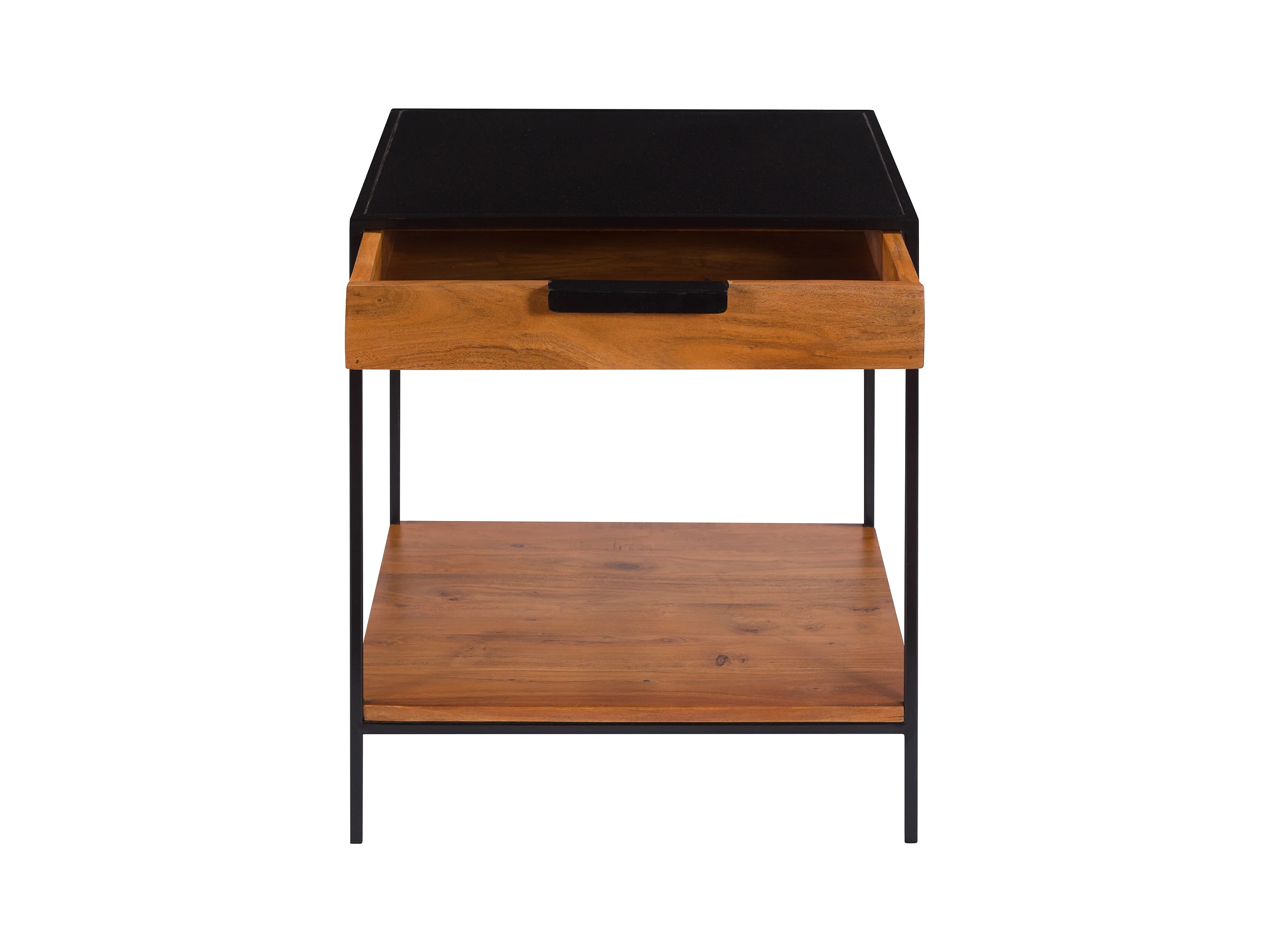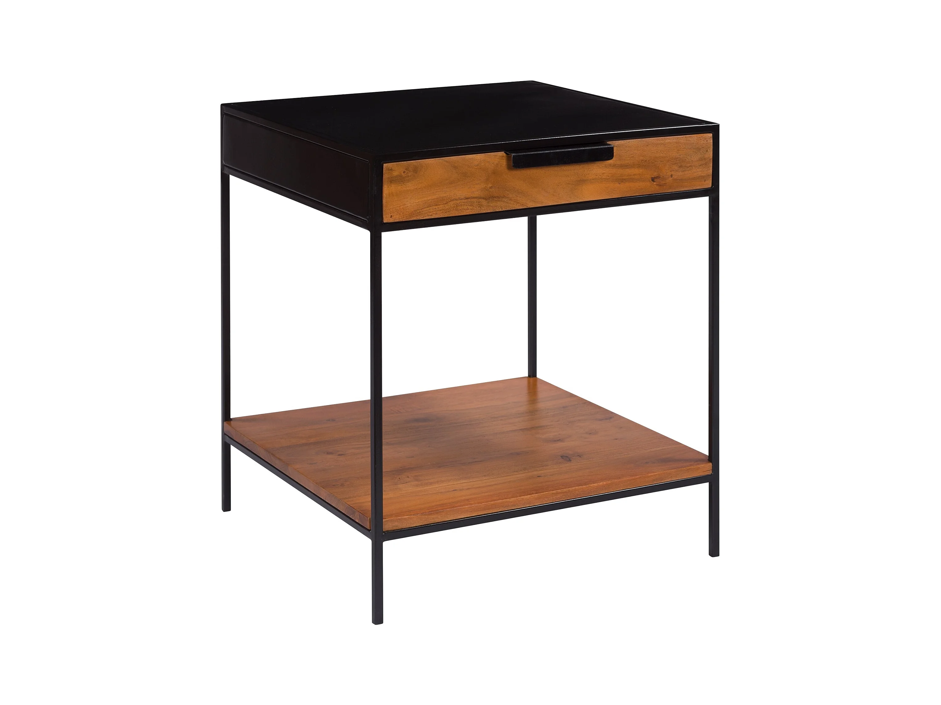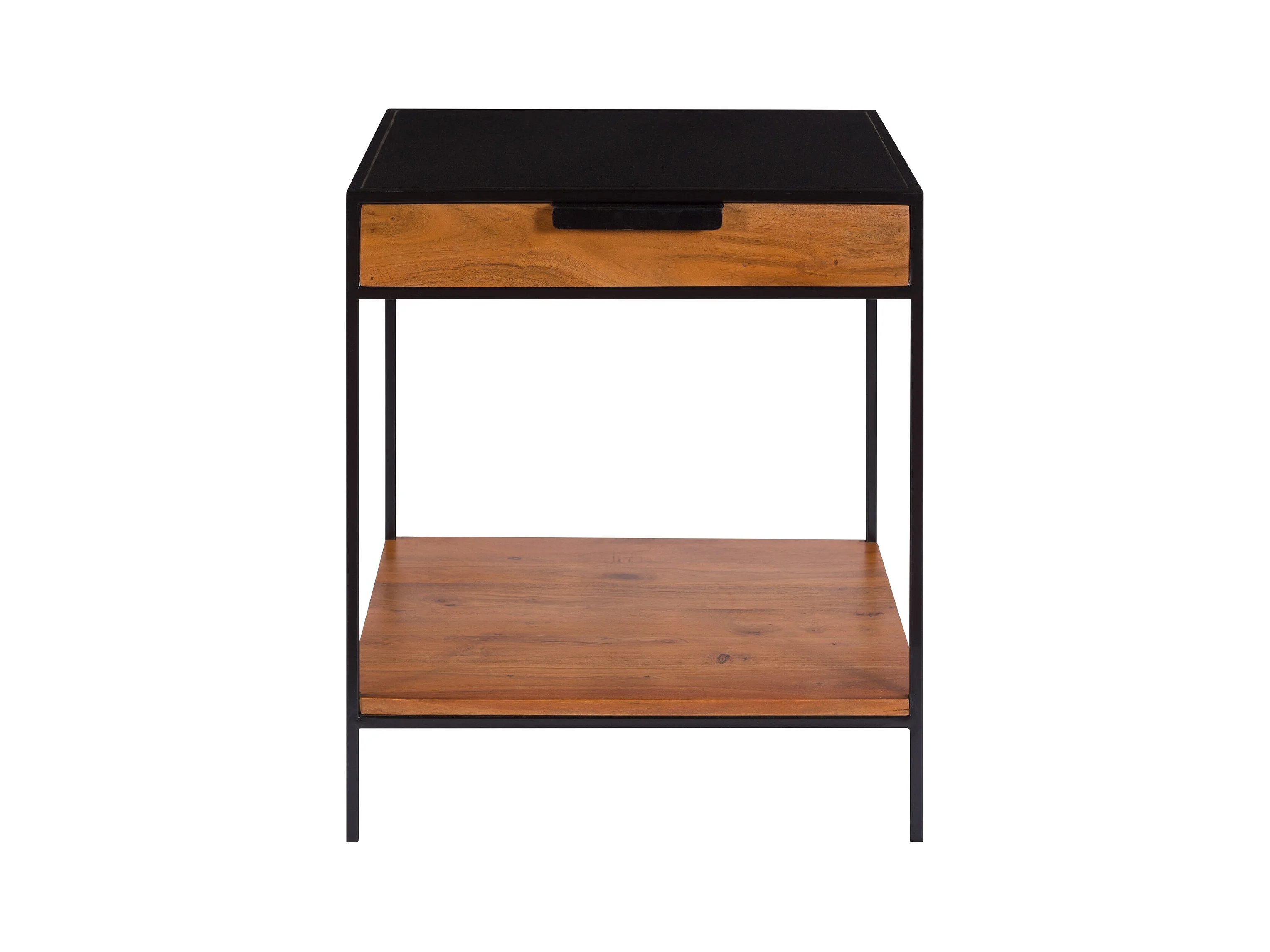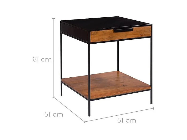 Table de chevet 1 tiroir en bois d'acacia et métal noir - Jakson