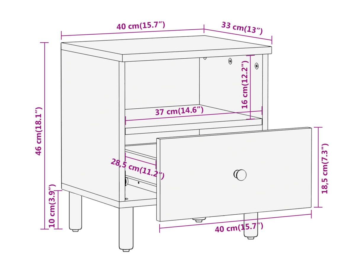 Table de chevet-Table d'appoint-Table de Nuit 40x33x46 cm Bois de manguier solide