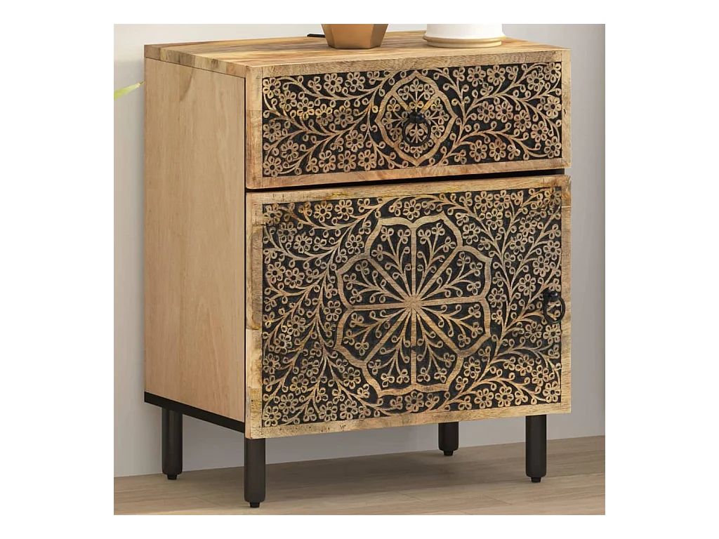 Table de chevet-Table d'appoint 50x33x60 cm bois de manguier massif
