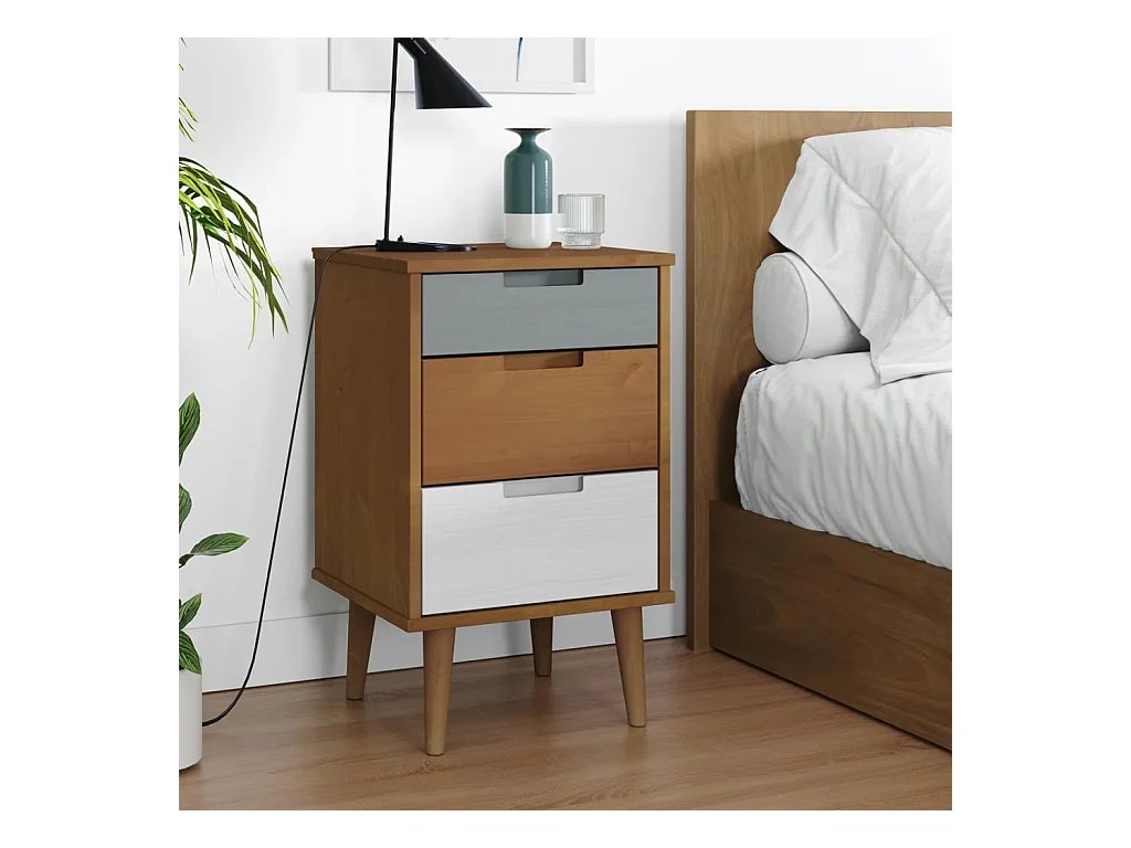 Table de chevet-Table d'appoint MOLDE Marron 40x35x65 cm Bois de pin solide