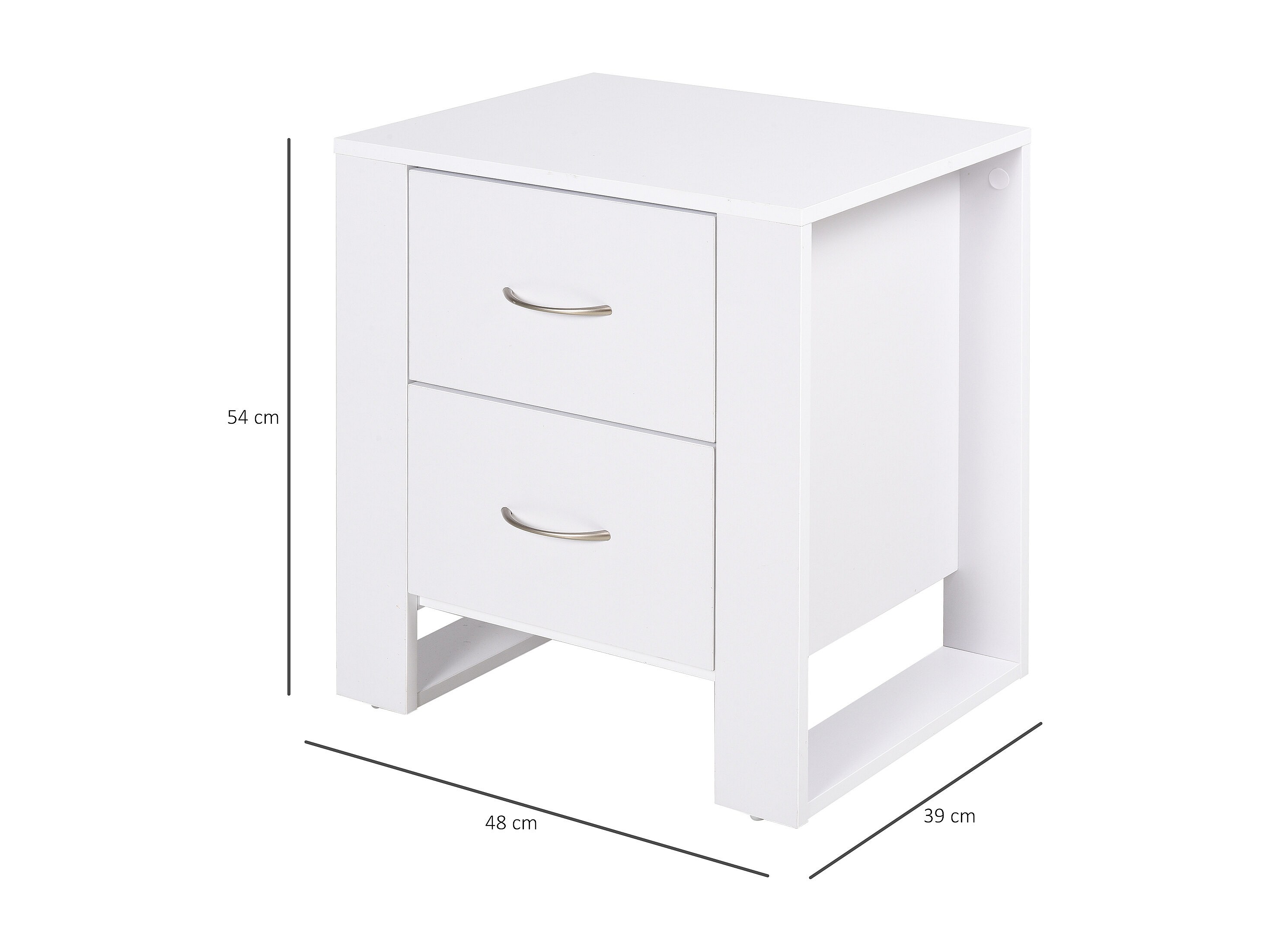 Table de Chevet Table de Nuit 2 Tiroirs Design Contemporain Dim. 48L x 39l x 54H cm Panneaux de Particules Blanc