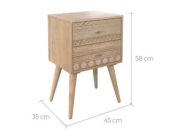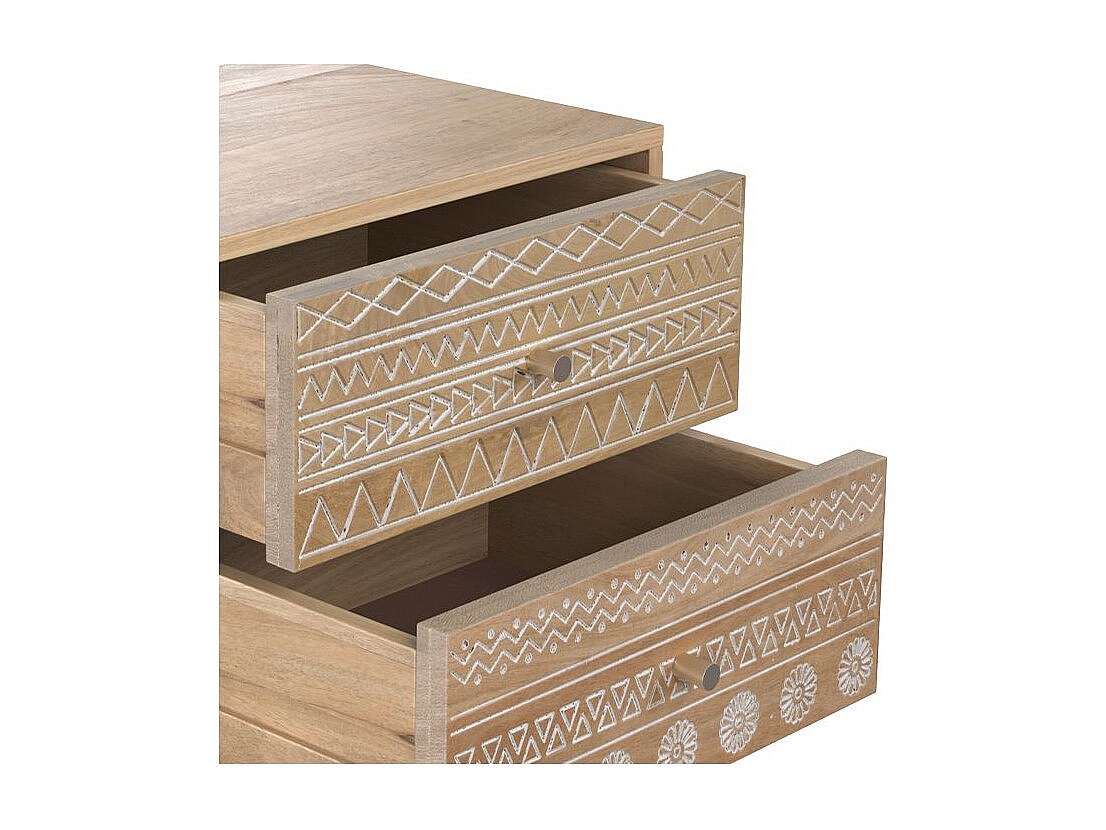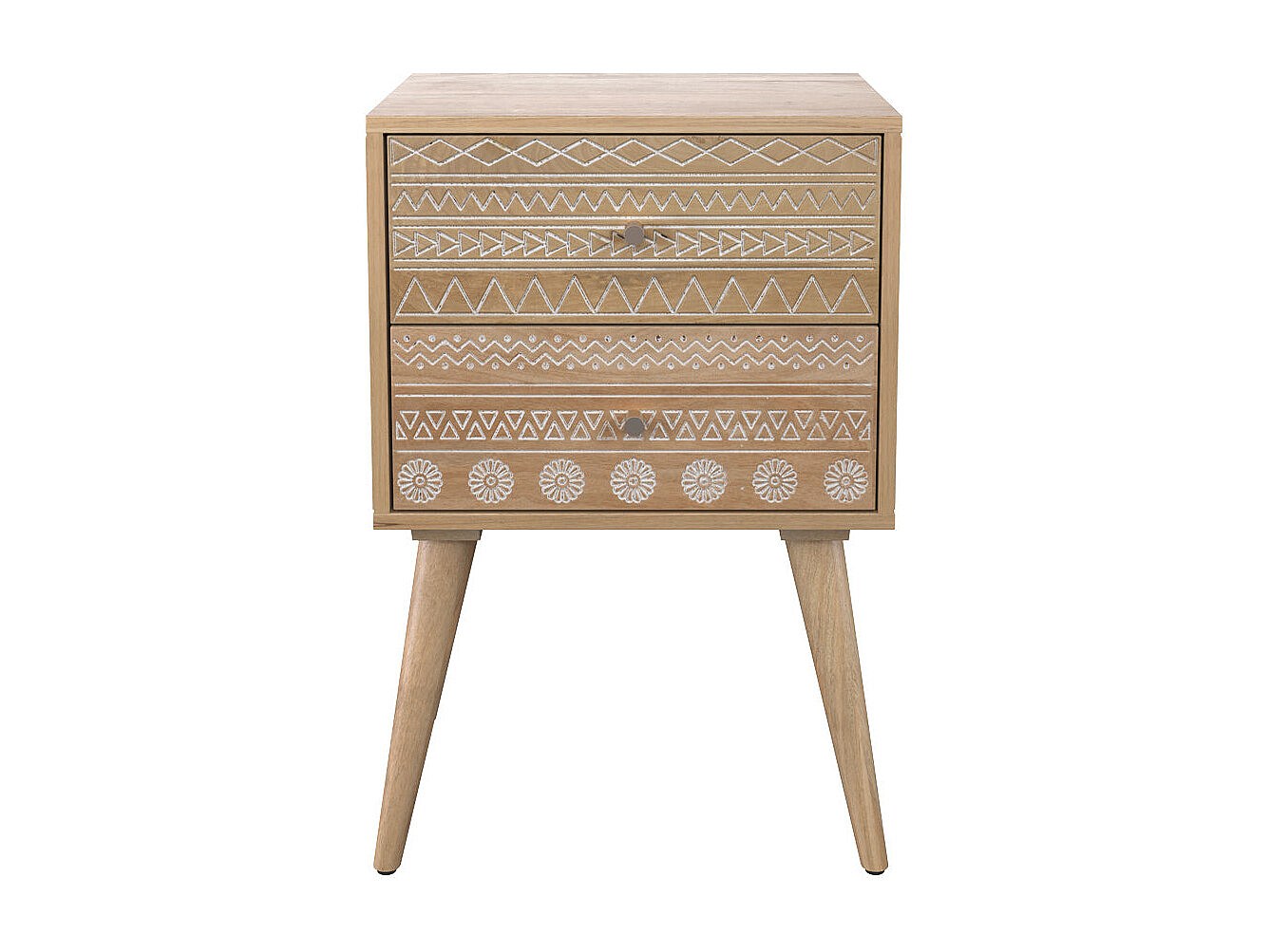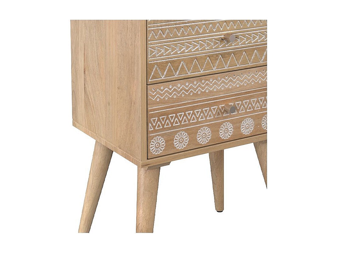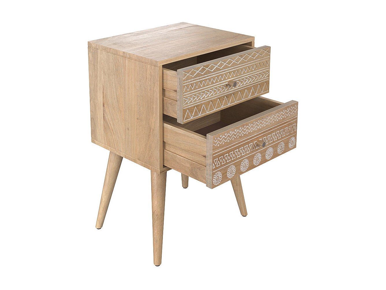 Table de chevet en bois de manguier gravé 2 tiroirs - Tiny