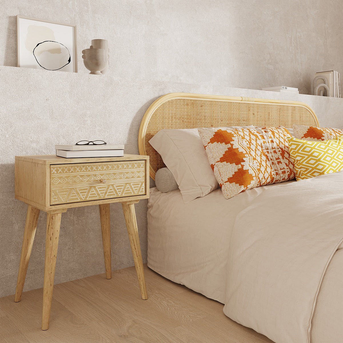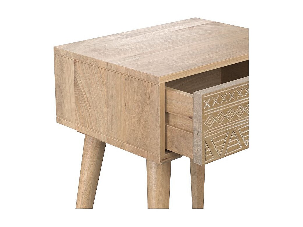 Table de chevet en bois de manguier gravé 1 tiroir - Tiny