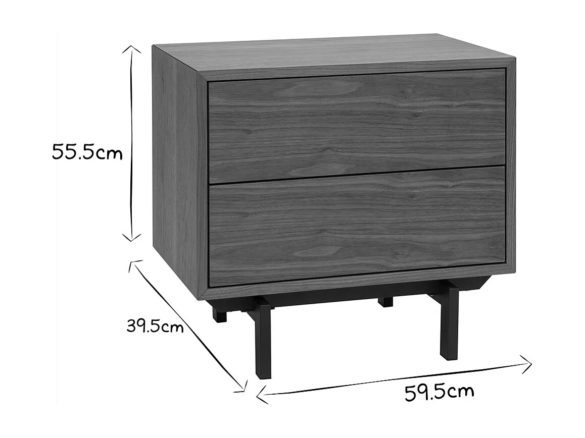 Table de chevet vintage bois foncé noyer et métal MANNY