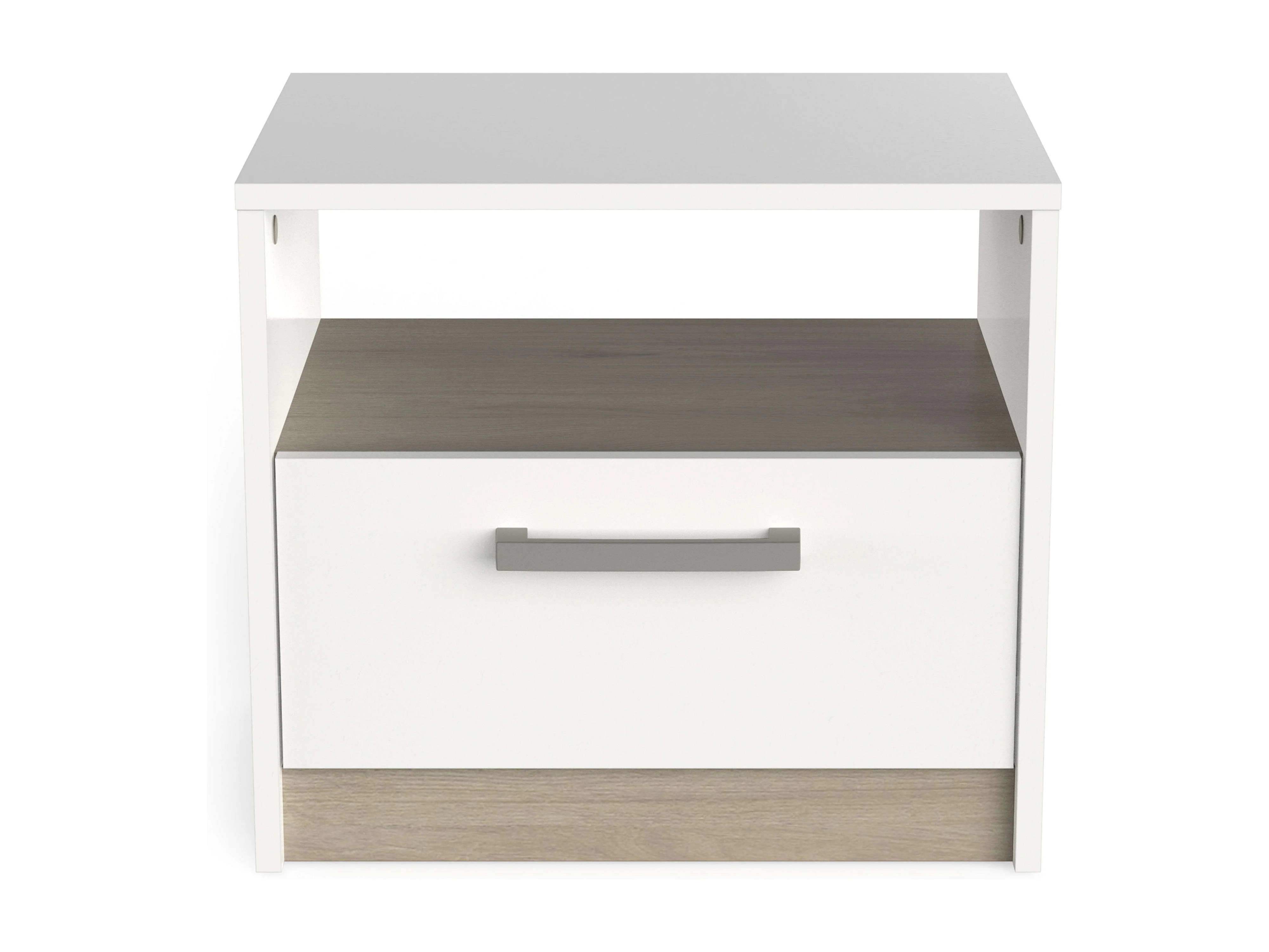Table de chevet Germain 1 tiroir Blanc mat Gris Mélamine 40 cm Moderne