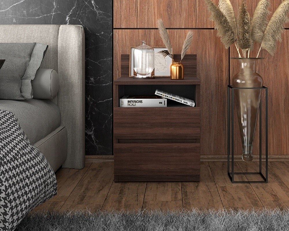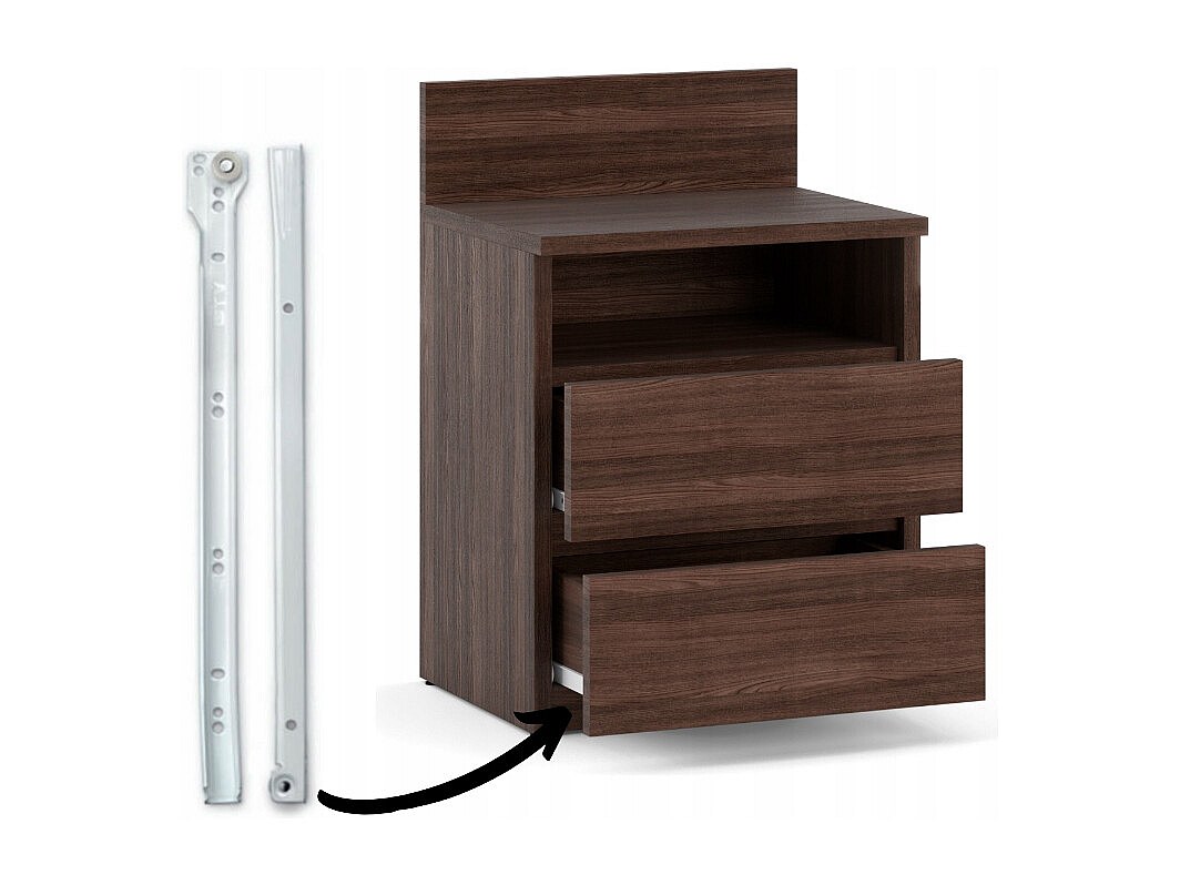 Table de chevet Wenge 40 cm – 2 tiroirs + étagère, meuble de nuit pour chambre à coucher