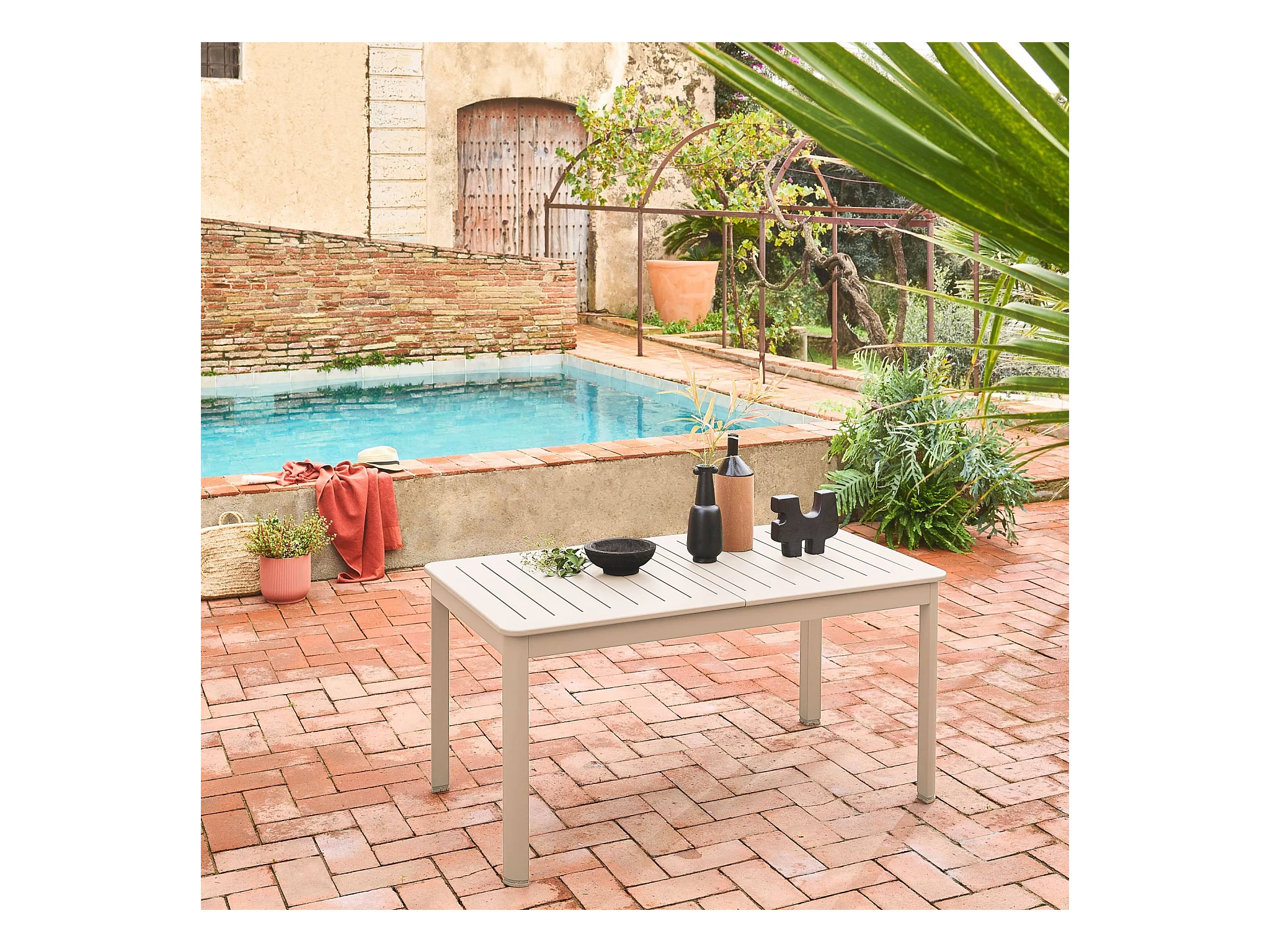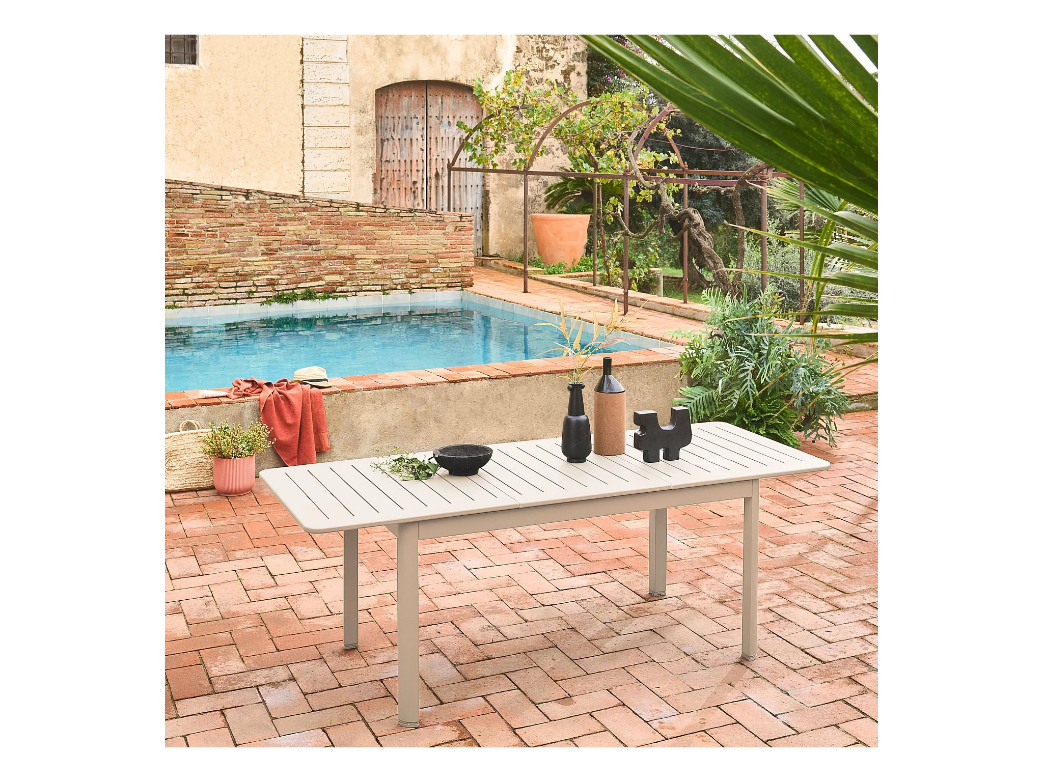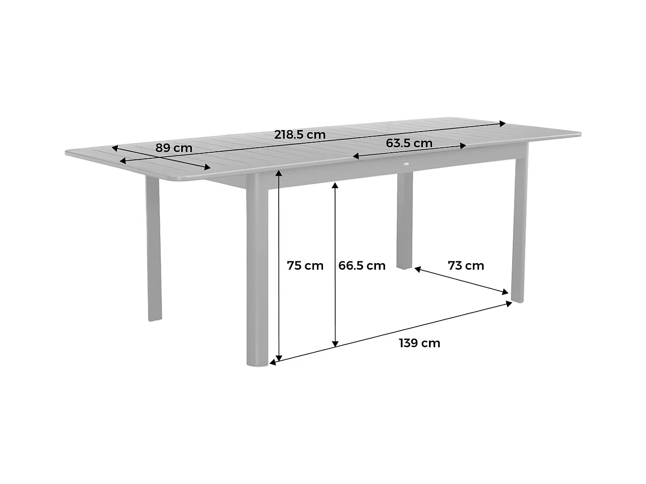 Table de jardin beige SEATTLE extensible aluminium. 6 places. 155 / 218.5 x 89 x 75 cm