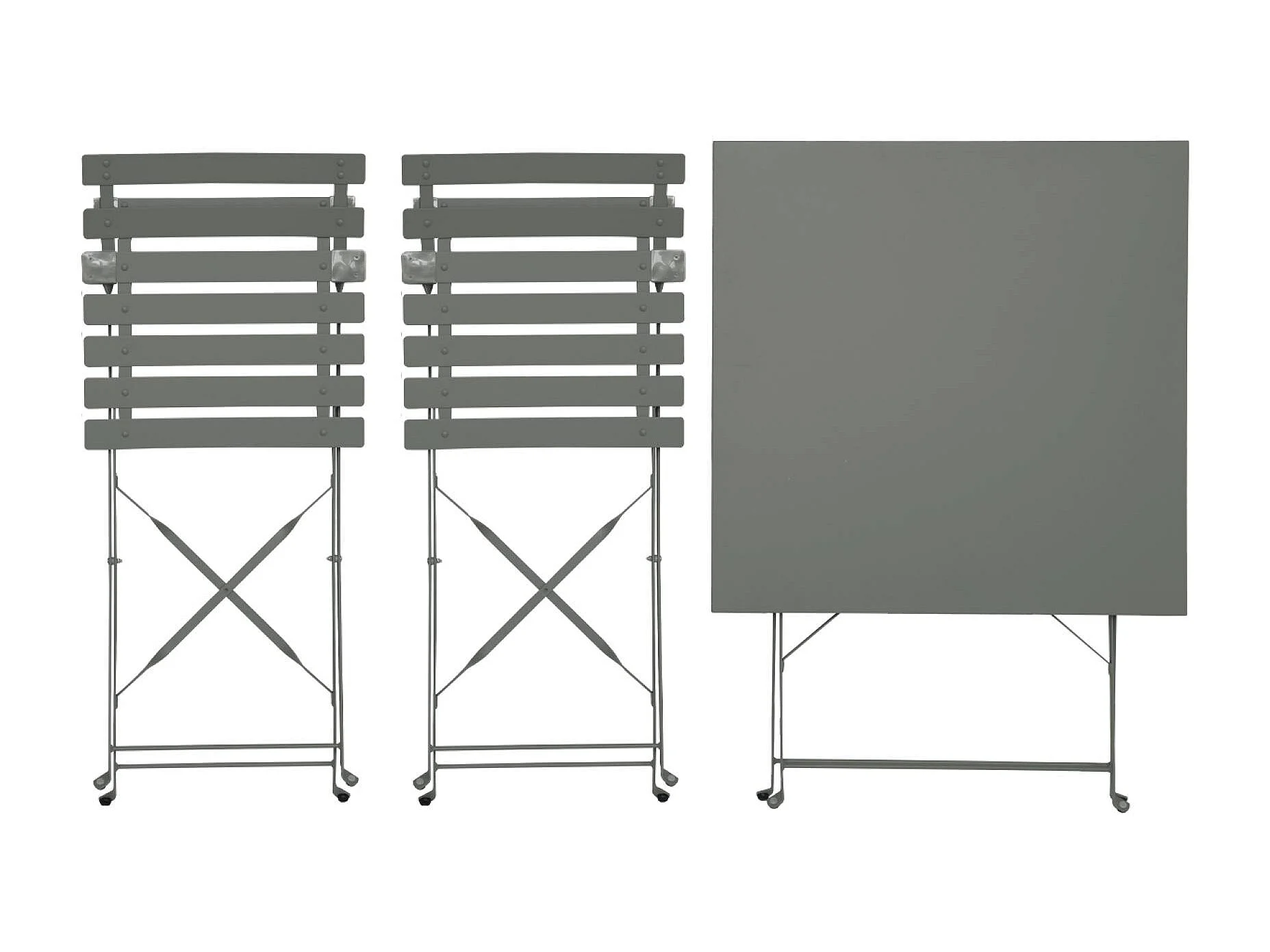 Table de jardin bistrot pliante métal + 2 assises kaki 70 x 70cm. acier thermolaqué