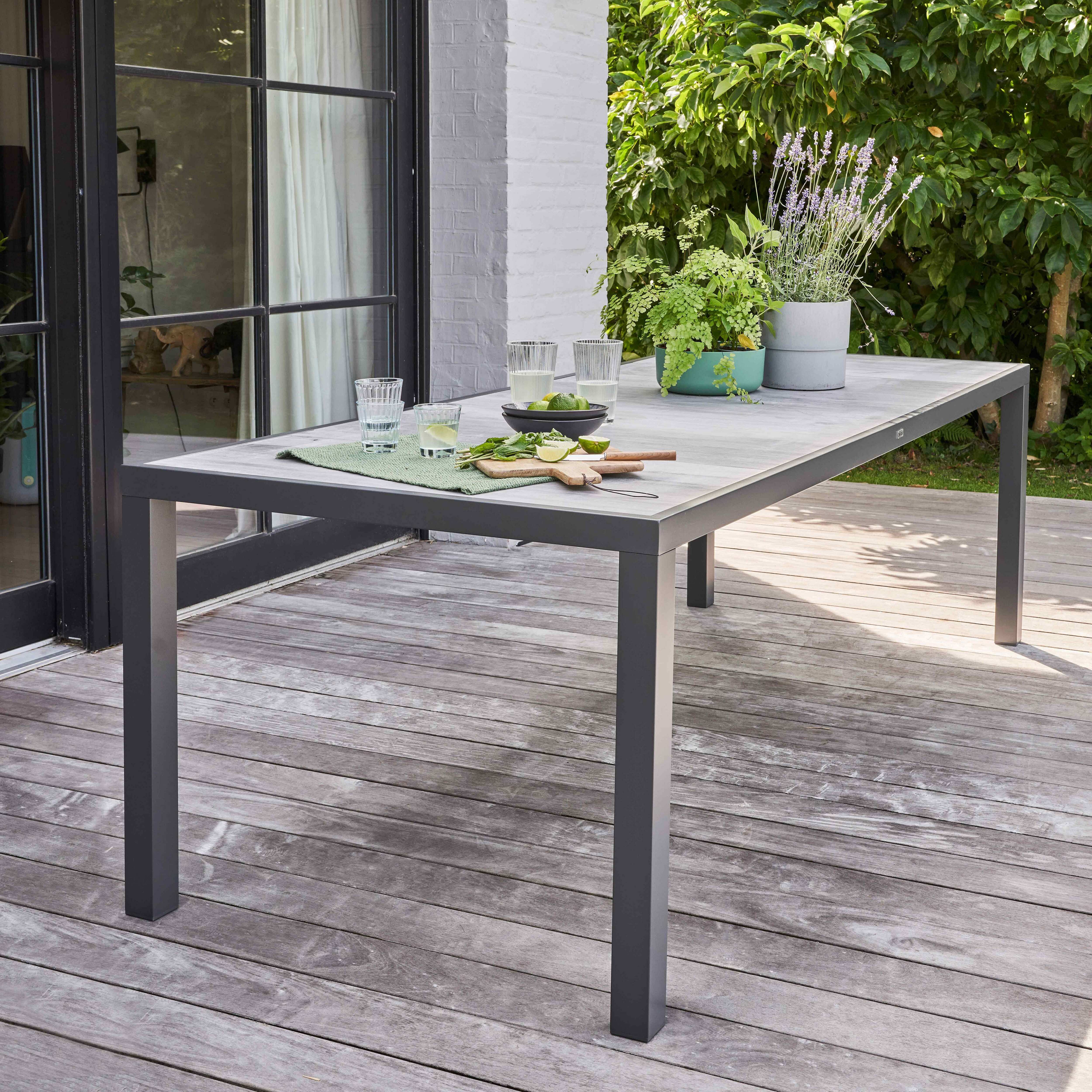 Table de jardin en aluminium et céramique 10 places effet bois grisé - Tivoli
