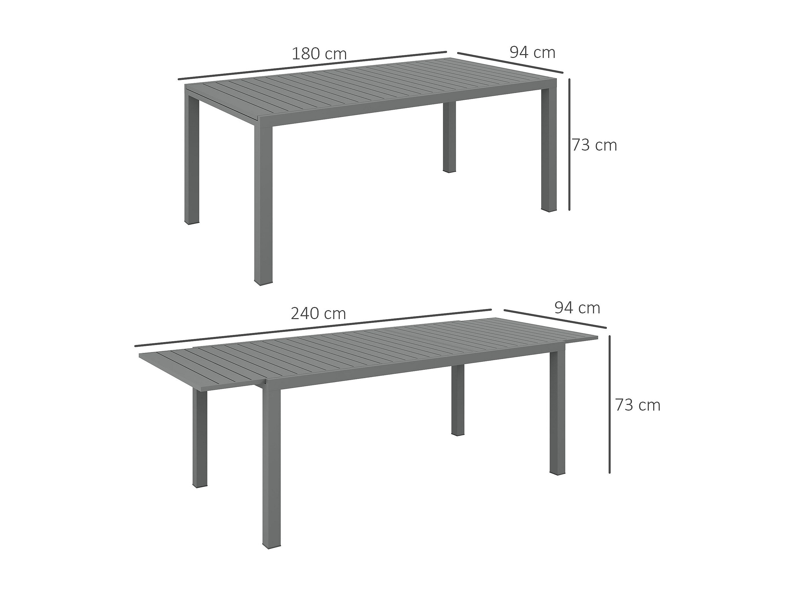Table de jardin extensible 6-8 personnes dim. 180/240L x 94l x 73H cm alu gris