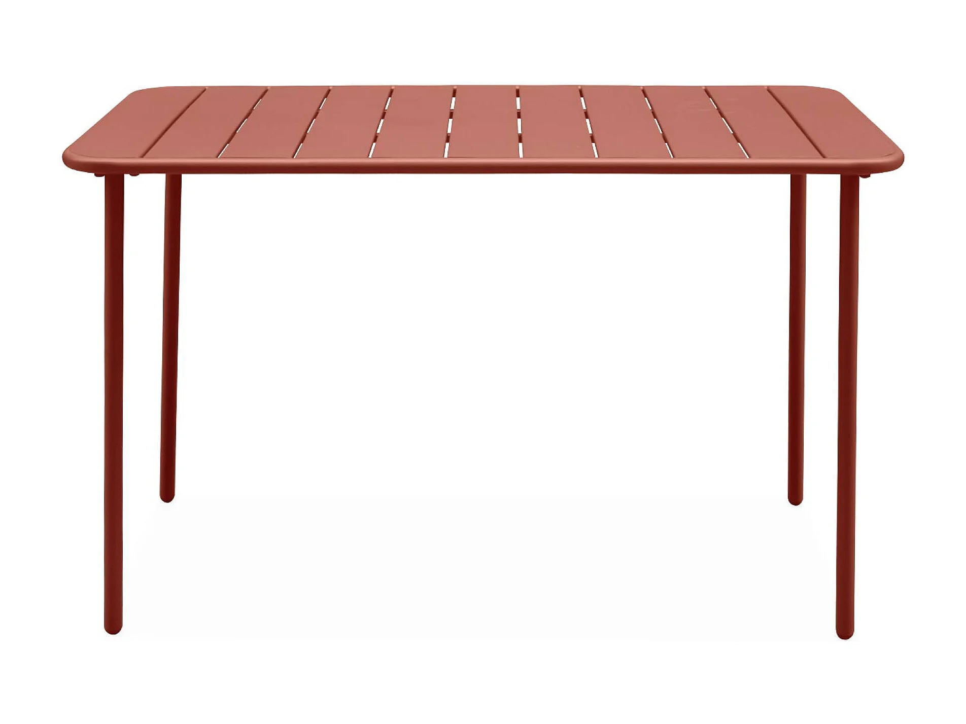Table de jardin métal 4 places. terracotta. Amelia. 120x70cm. traitement antirouille. lattes et bords arrondis