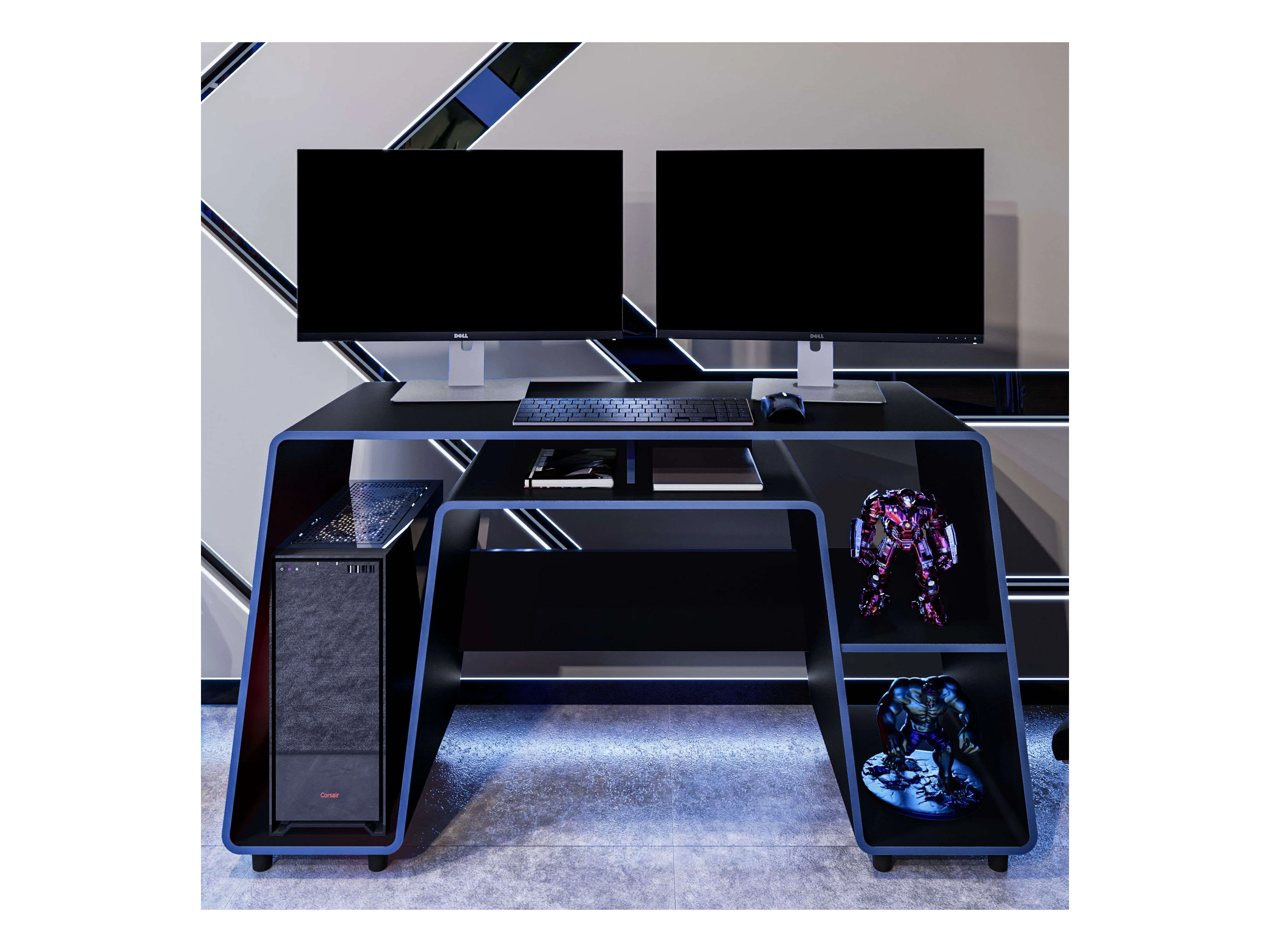 Table de jeu London noire et bleue, grand espace pour PC, tour de 150,5 cm