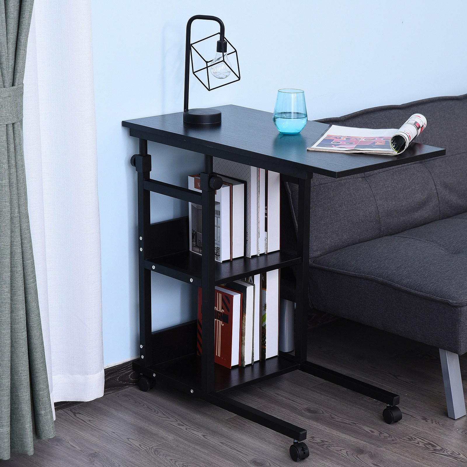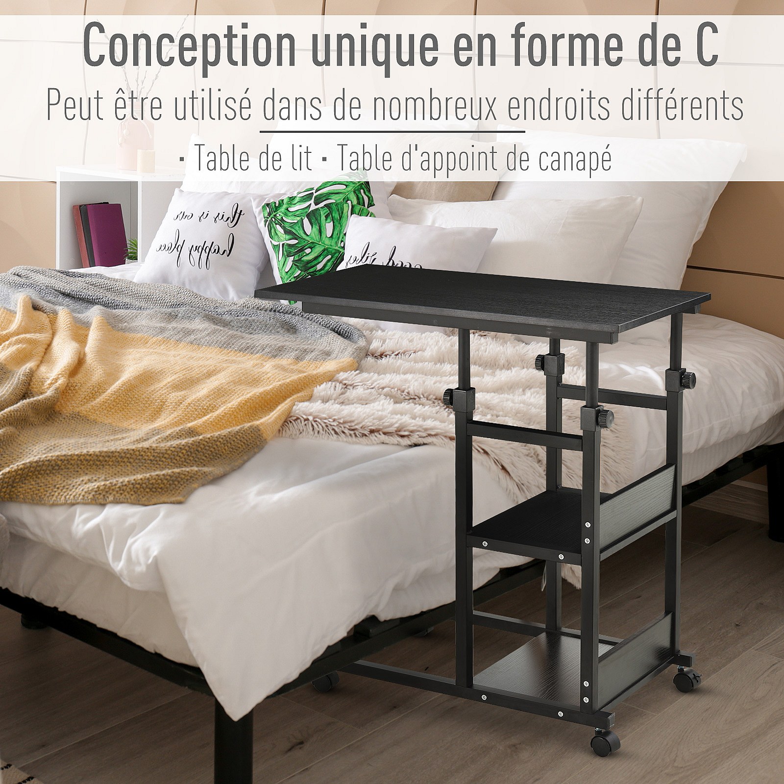 Table de lit/fauteuil - table roulante - hauteur réglable - 2 étagères intégrées - panneaux particules E1 métal noir