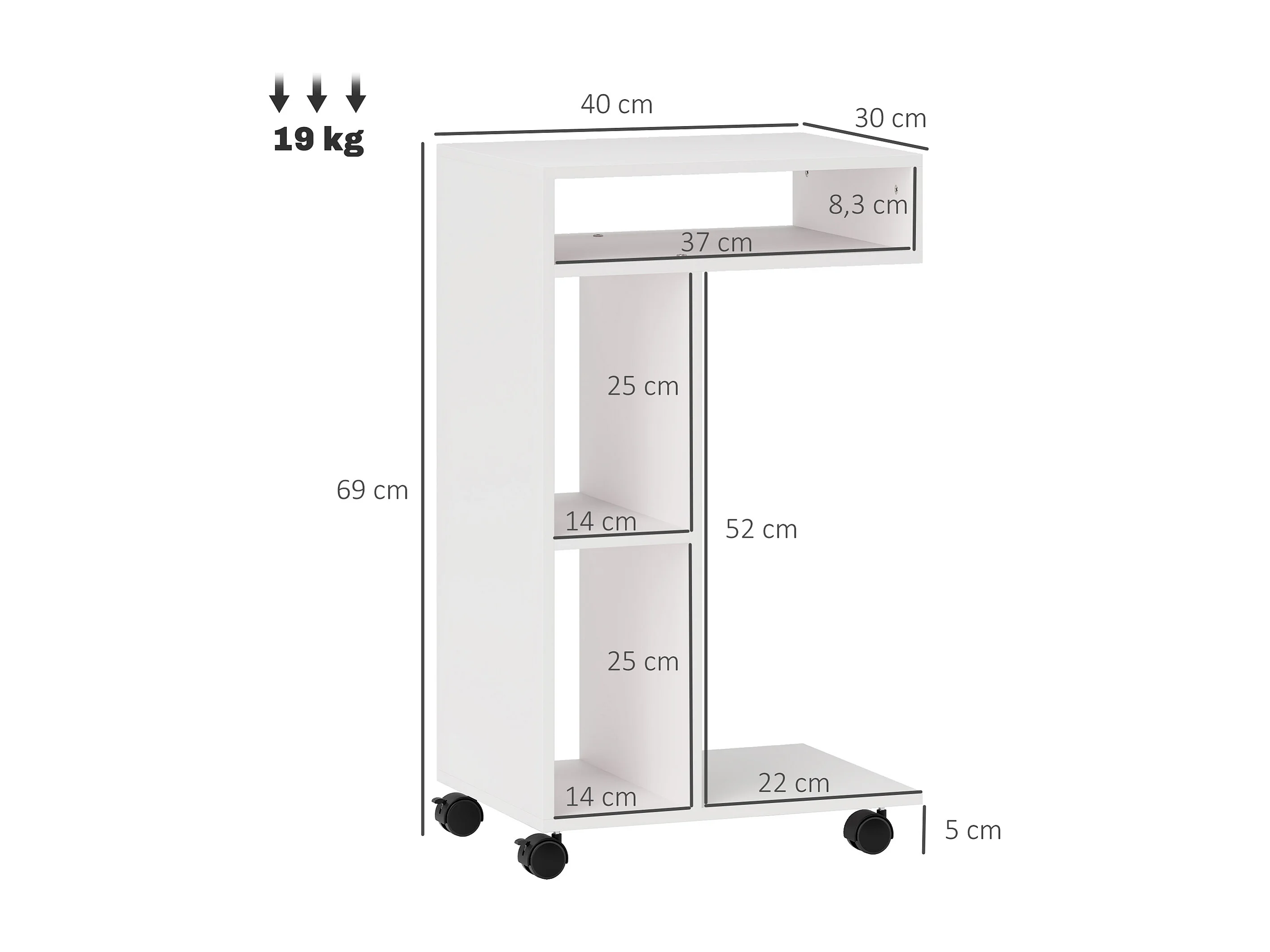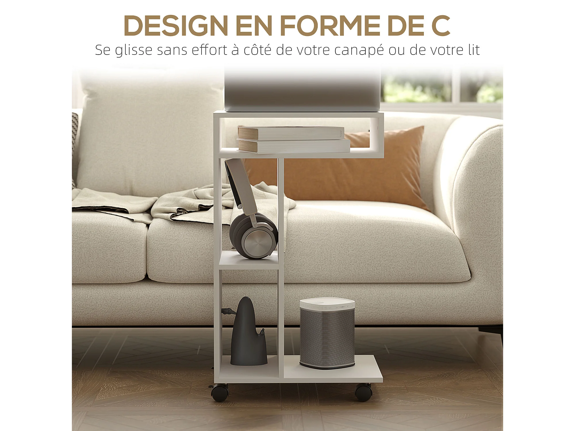 Table de lit mobile - table pour ordinateur portable - 3 niches, étagère - blanc