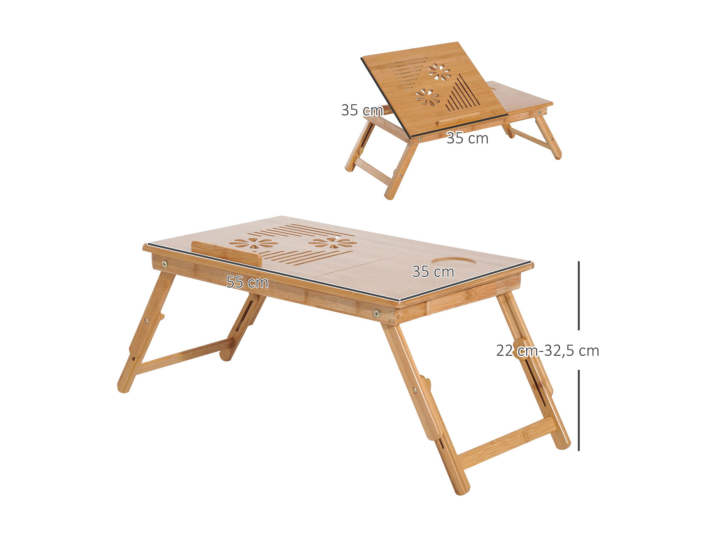 Table de lit pour ordinateur pliable réglable tiroir évents cale porte-gobelet bambou verni