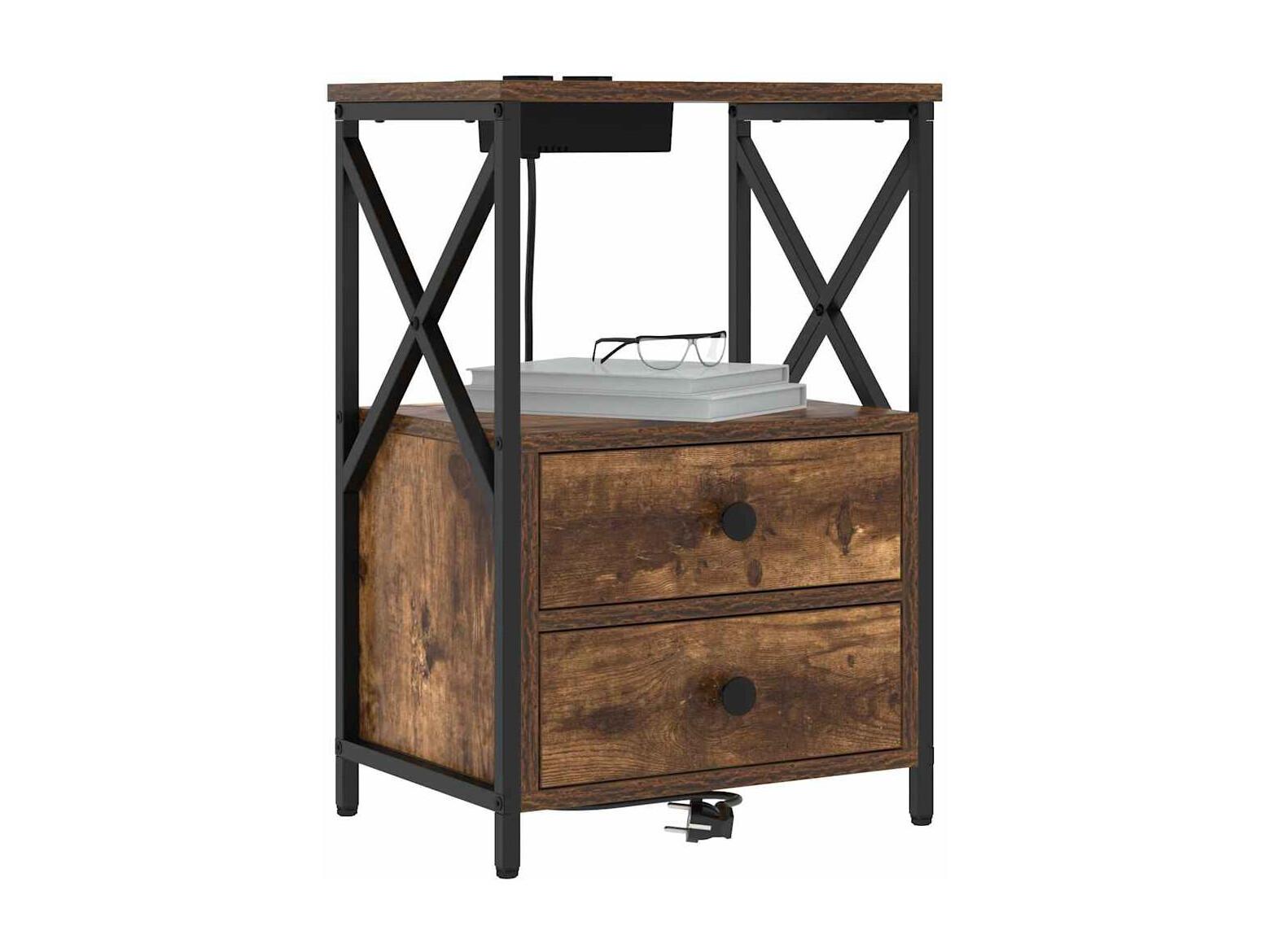 Table de nuit avec station de chargement avec tiroir Chêne fumé