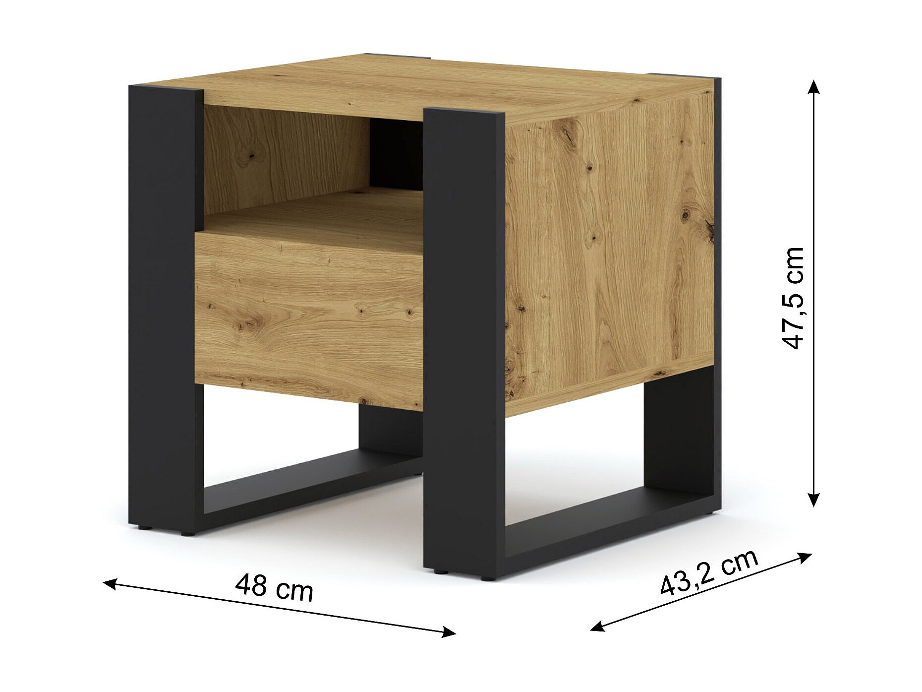 Table de chevet chêne artisanal 34x35,5x70 cm bois d'ingénierie