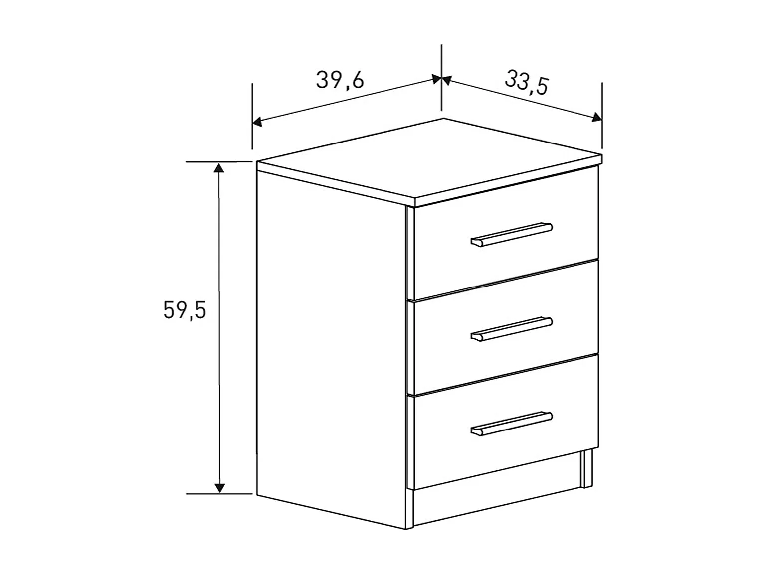 Table de nuit, table de chevet avec 3 tiroirs coloris chêne Mauvella - Longueur 39,60 x profondeur 33,50 x hauteur 59,50 cm