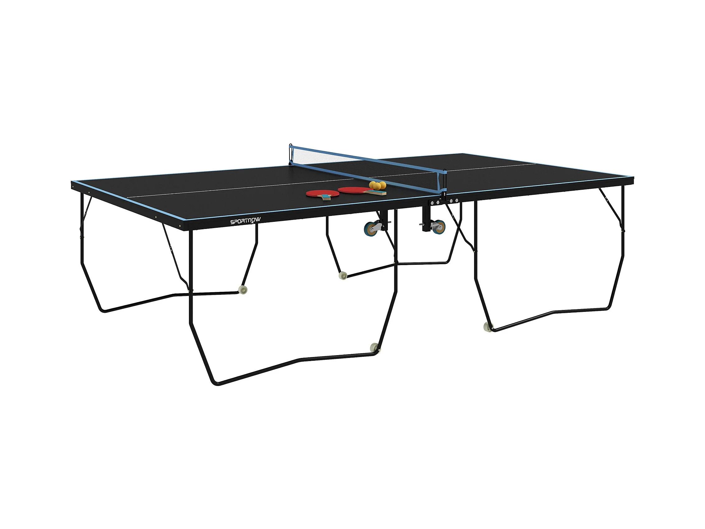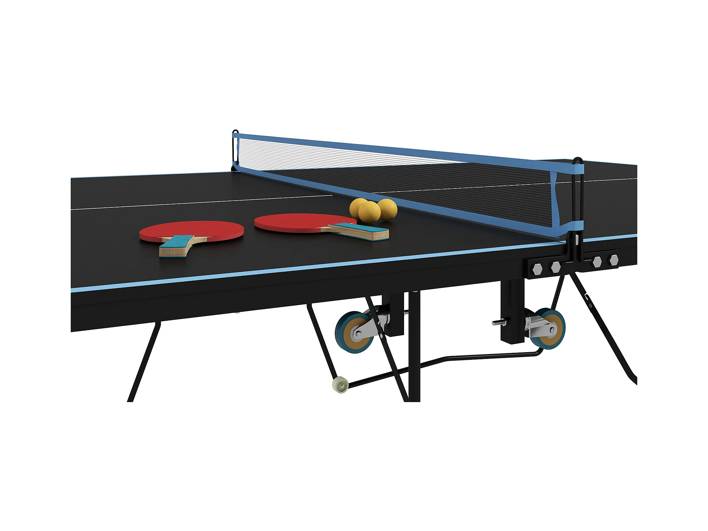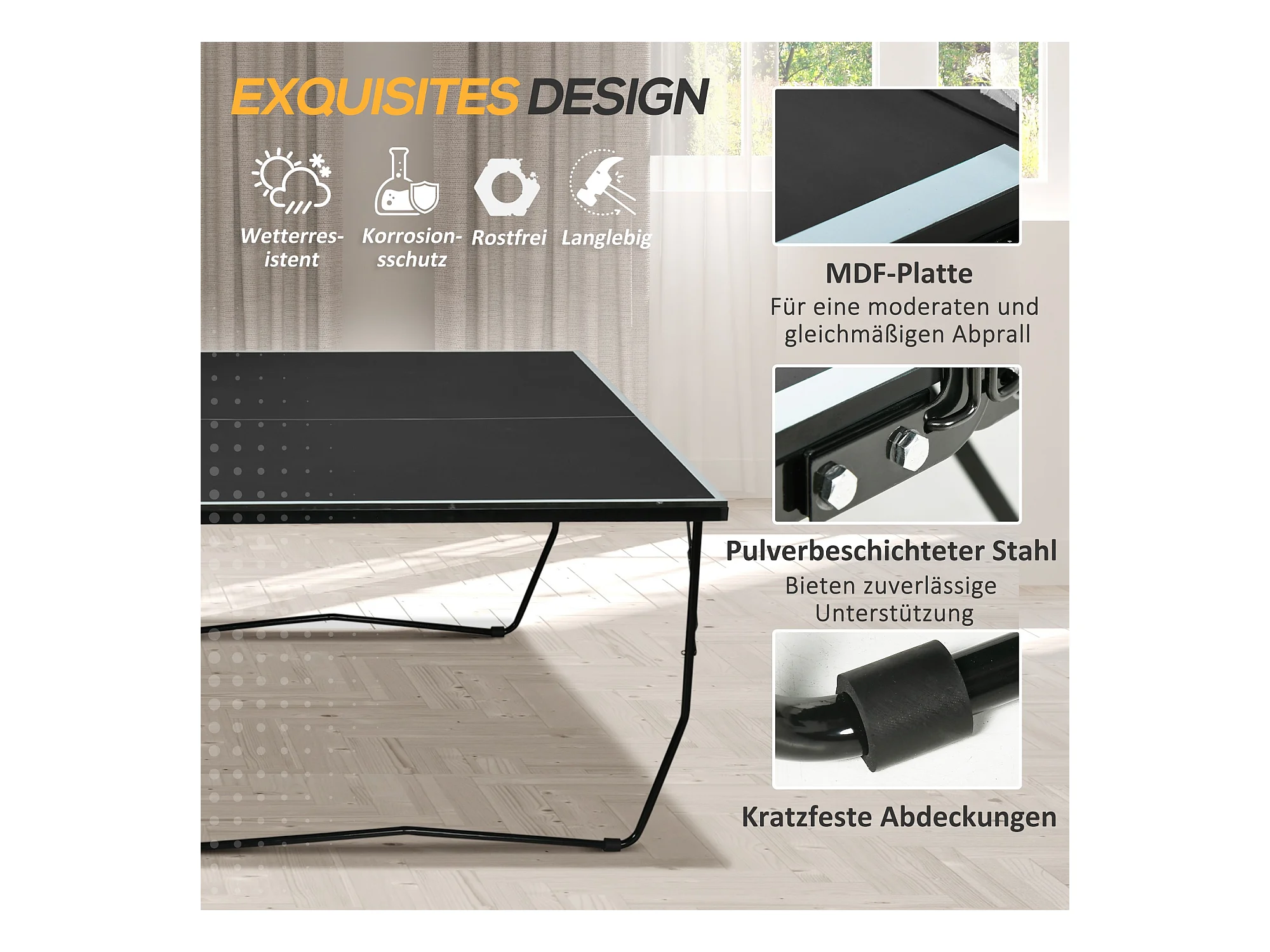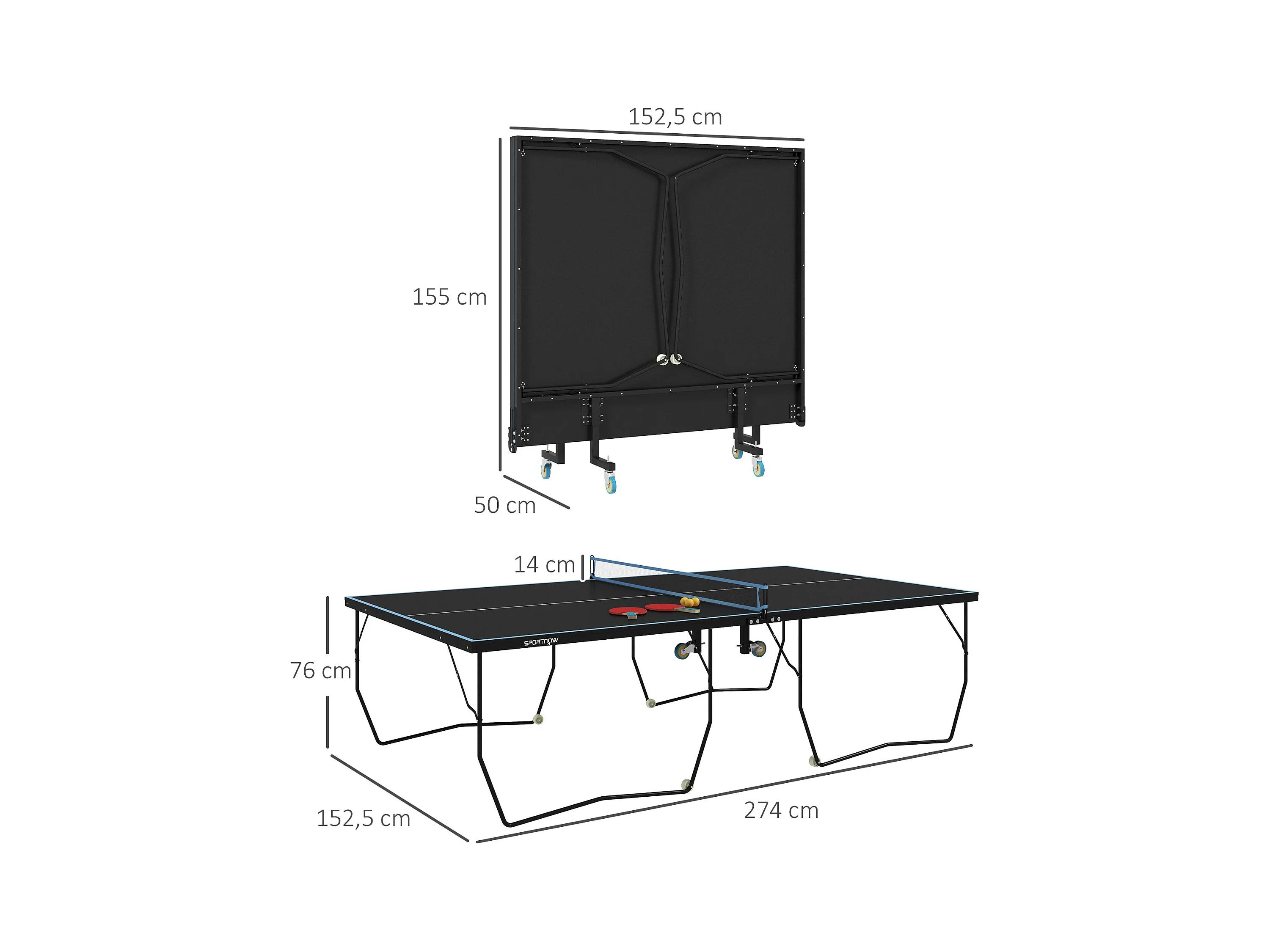 Table de ping-pong extérieure pliable avec filet, roulettes, 2 raquettes et 3 balles, acier et MDF, noir (274x152.5x76 cm)