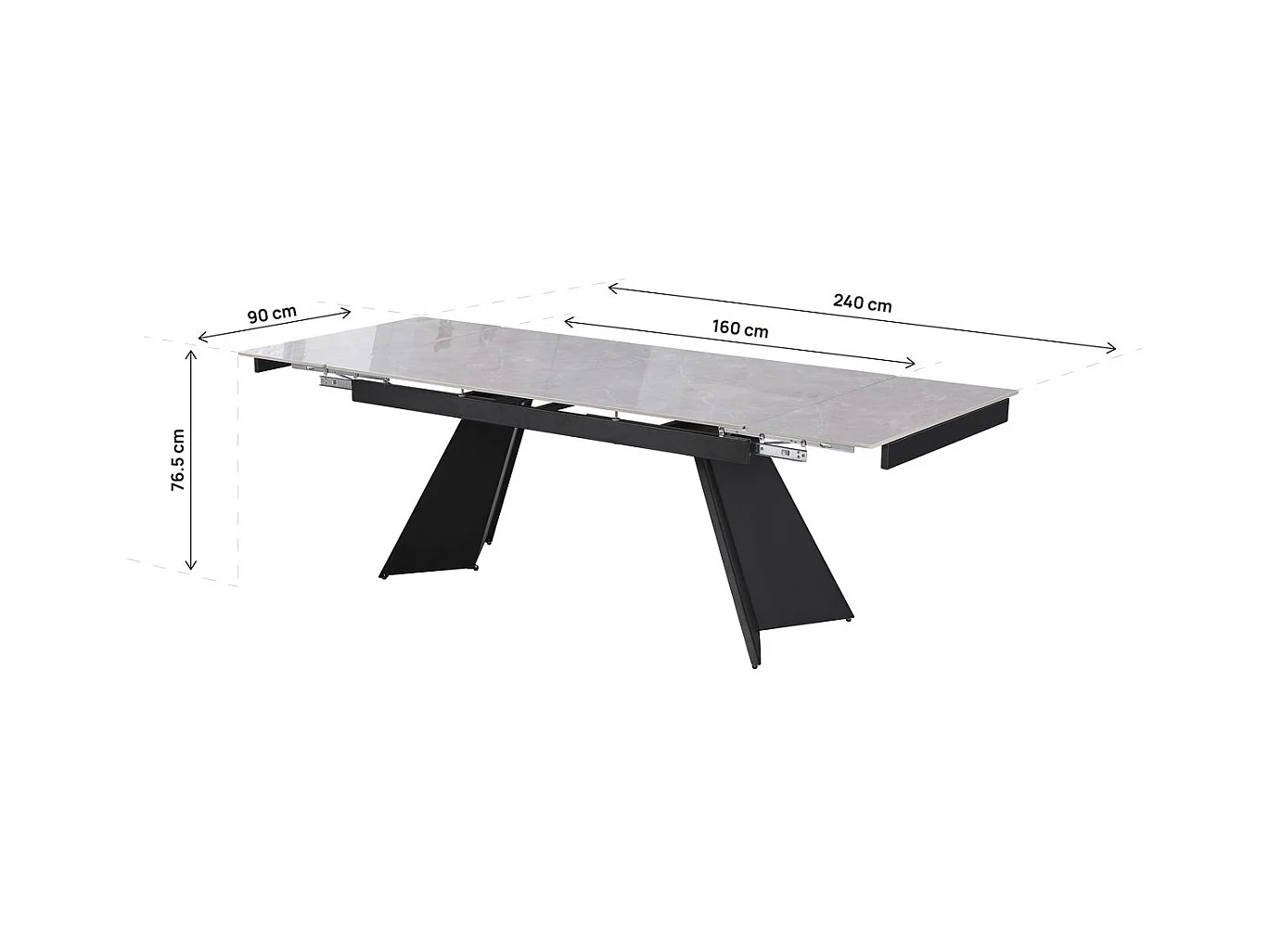Table de repas extensible en céramique 6 à 10 personnes "Equinoxe" - Gris marbré
