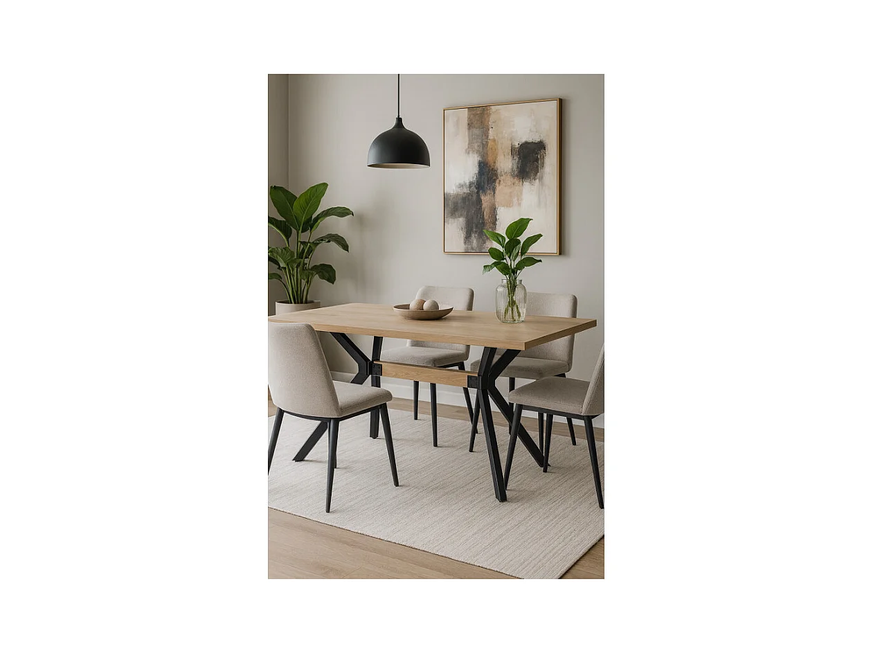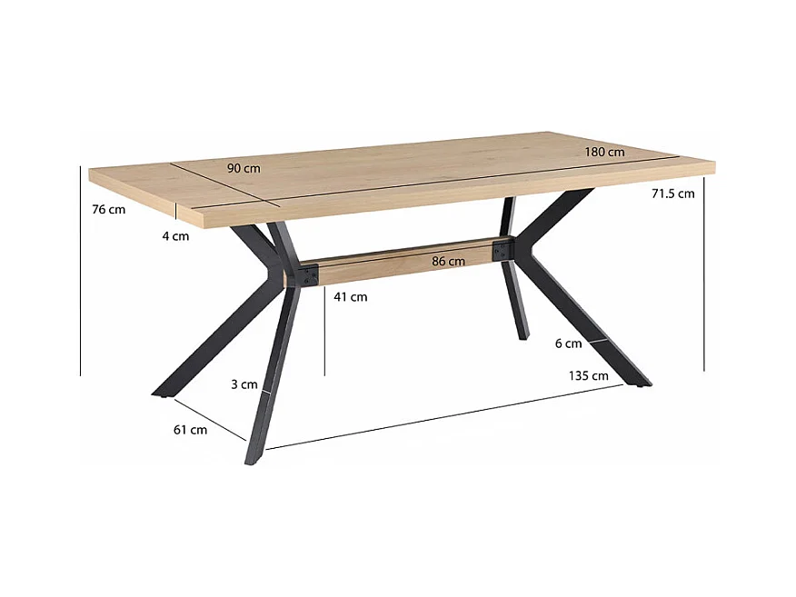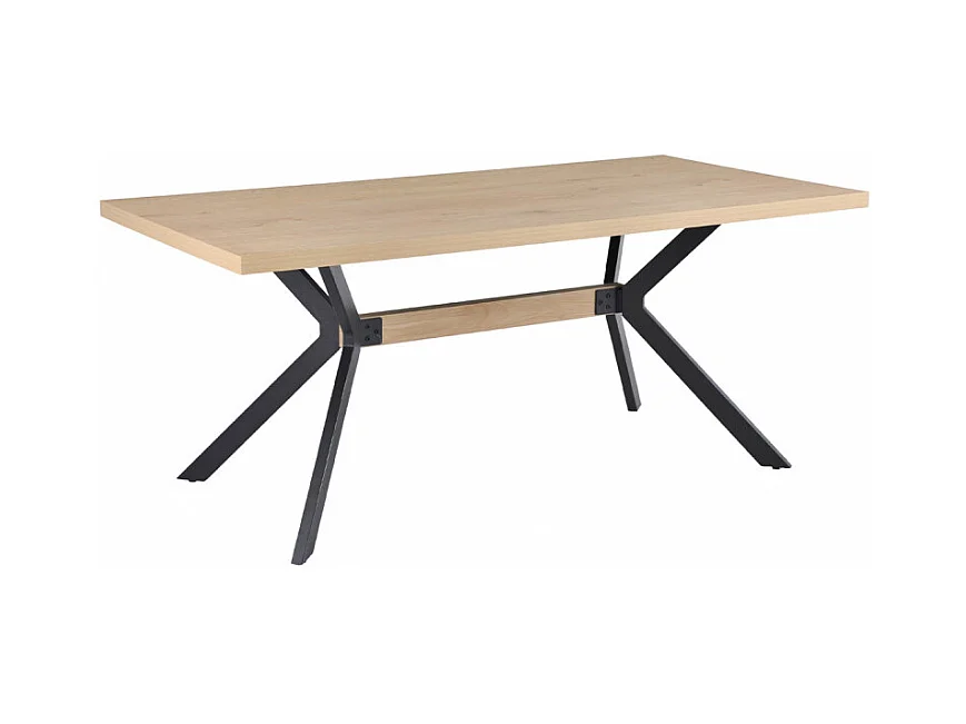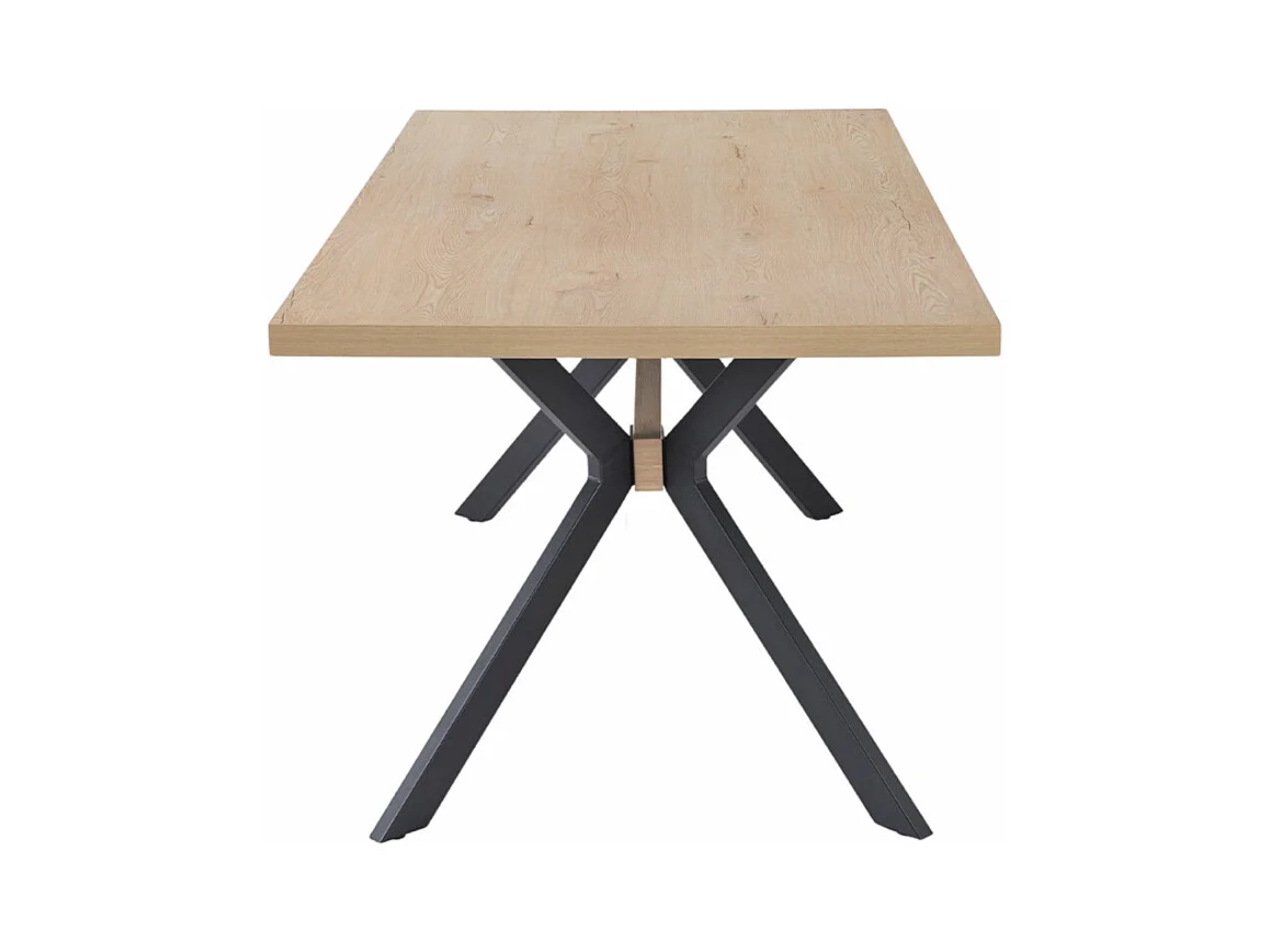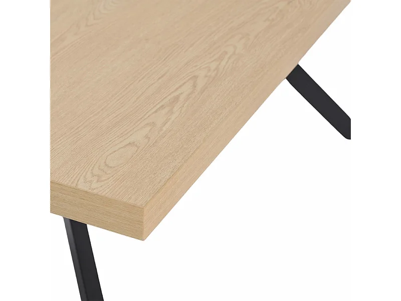 Table de repas L. 180 cm décor chêne et pieds en métal noir - LIGNA